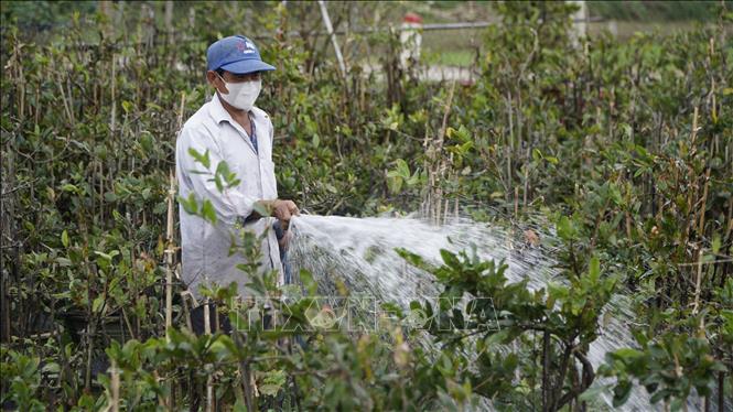 Cách đó không xa, anh Ngô Minh Trí cũng đang tất bật chăm sóc cho gần 2000 cây mai lớn nhỏ trong vườn. Anh cho biết, sau lũ, việc chăm sóc mai đòi hỏi nhiều công sức hơn, nhưng nhờ thời tiết thuận lợi, cây phục hồi khá tốt.