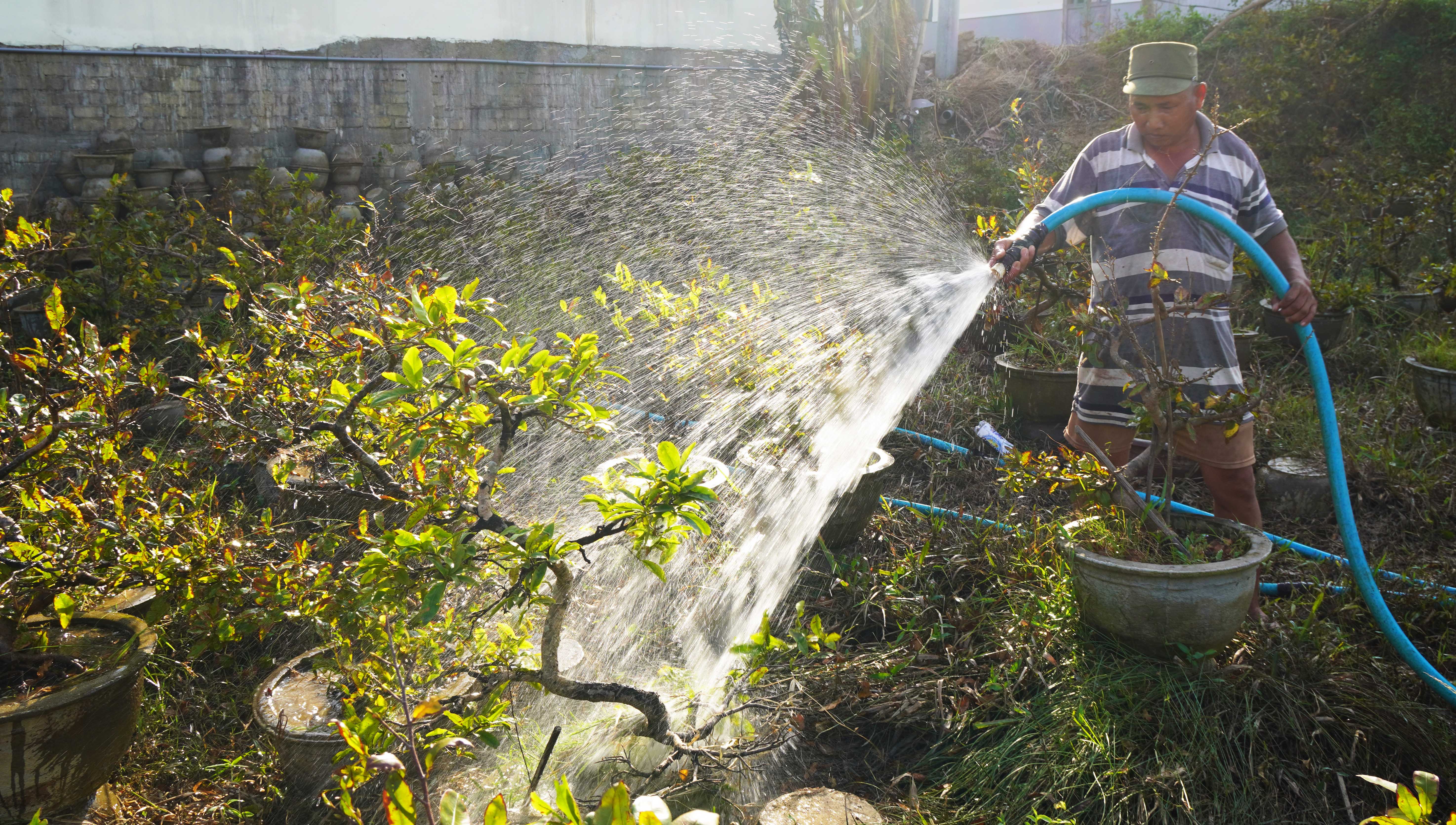 Tưới nước, phân hữu cơ để dưỡng sức "cứu" vụ mai tết
