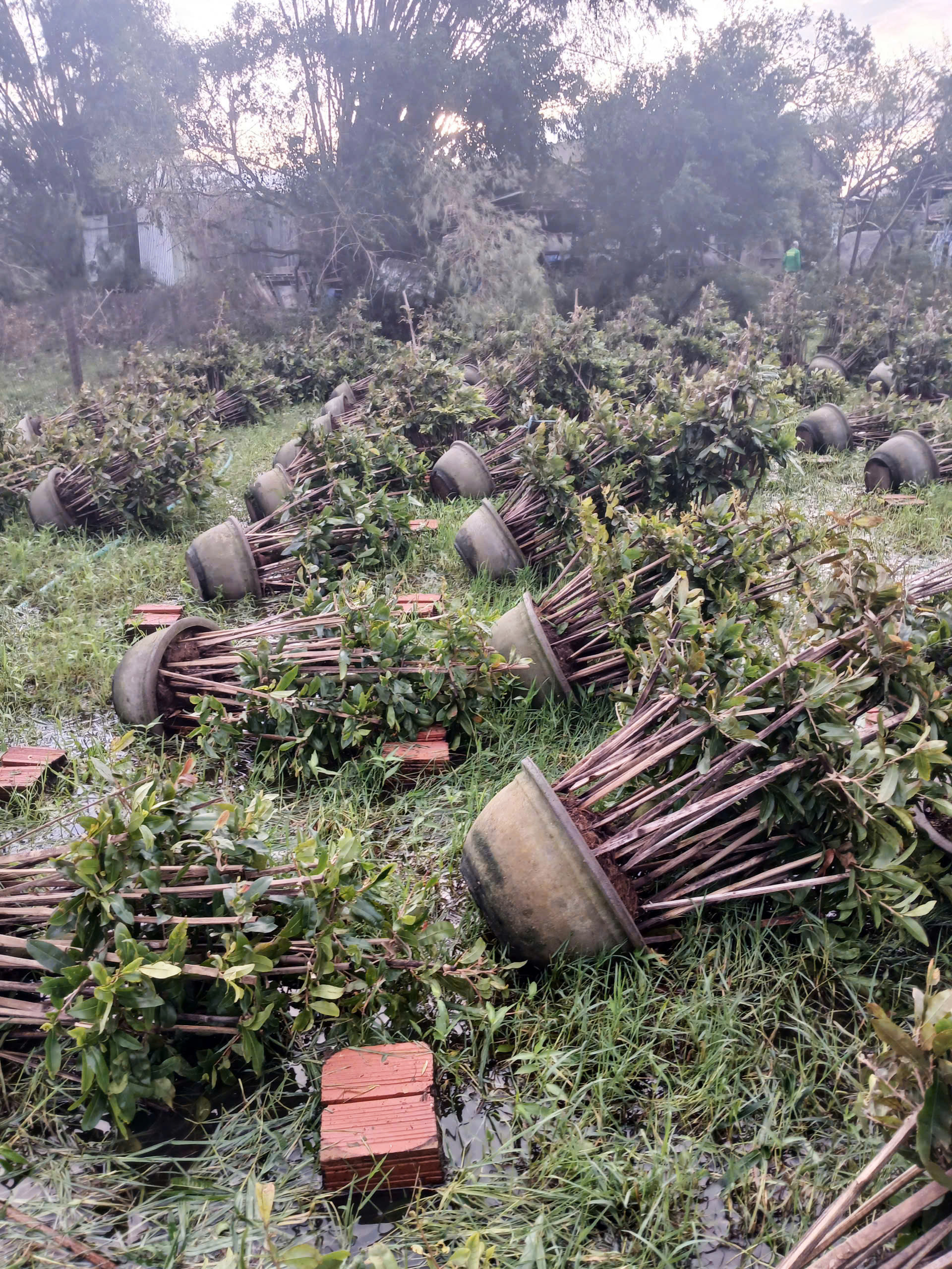 Vụ tết này, gia đình bà Hà chuẩn bị 3.000 cây mai tuổi 4-5 năm để xuất bán cho thương lái Bắc – Nam, đã nhận cọc hơn 200 triệu đồng. Thế nhưng bão đến cuốn sạch cơ nghiệp, toàn bộ số mai đặt cọc đều hư hại nặng.