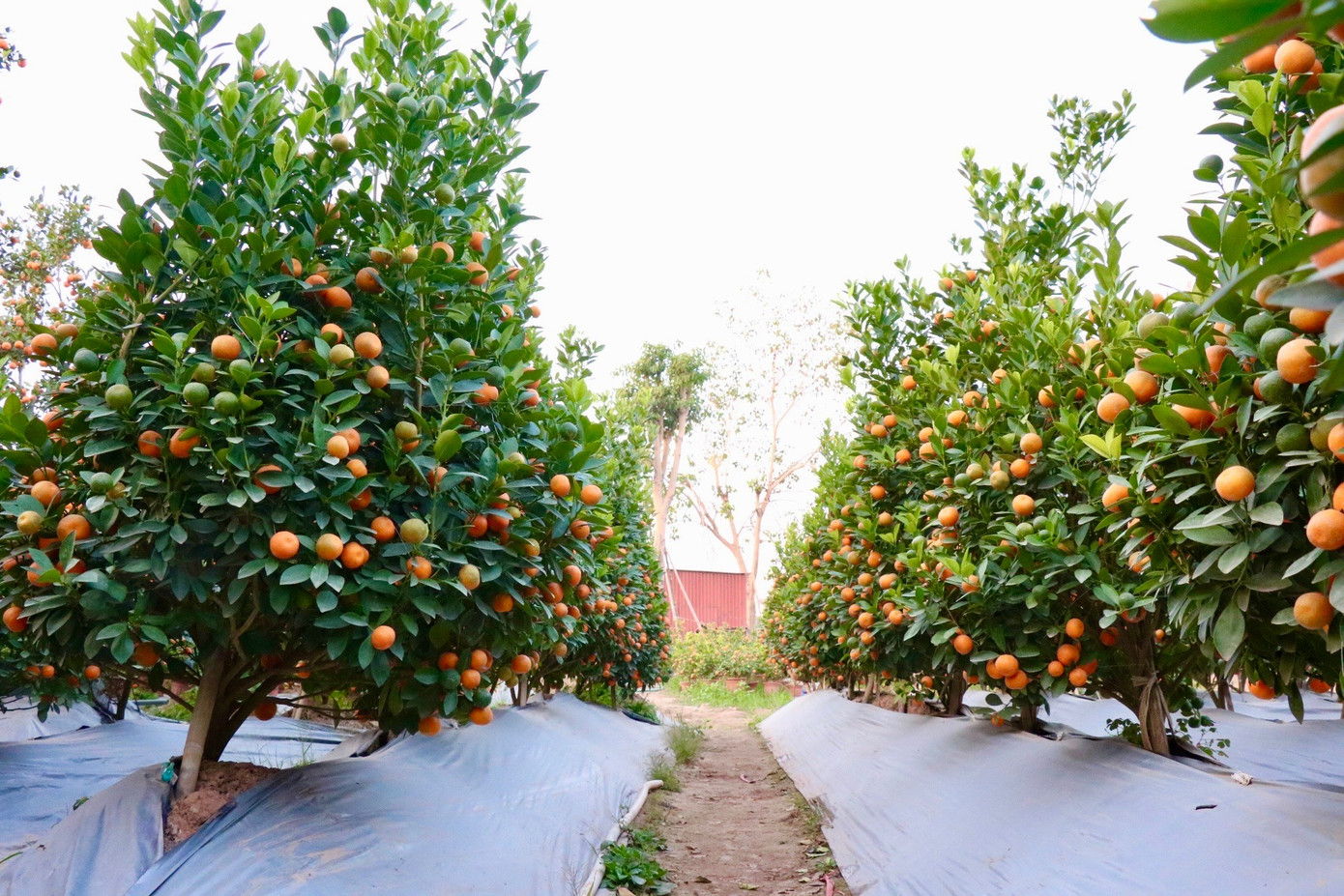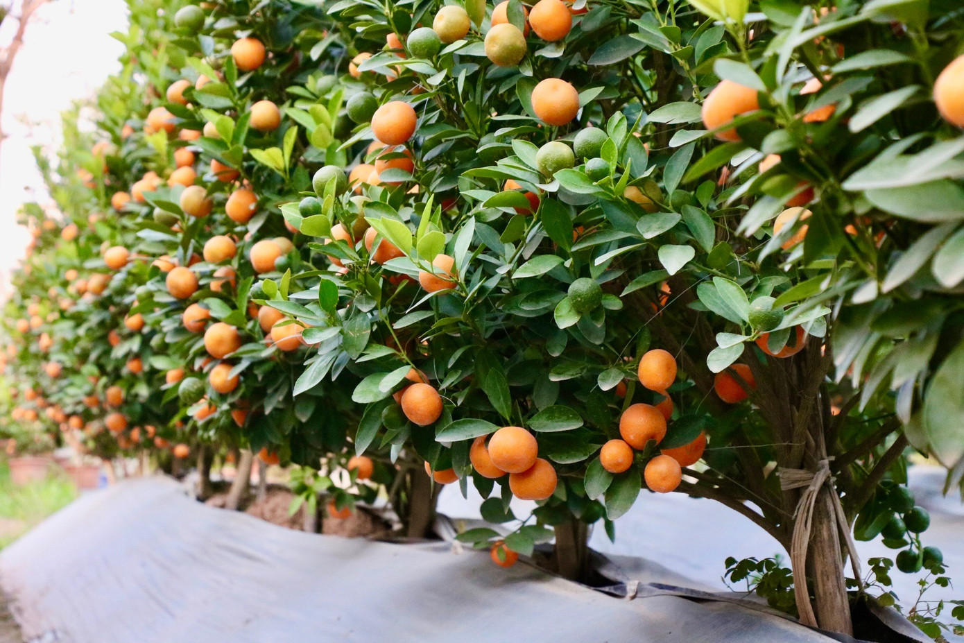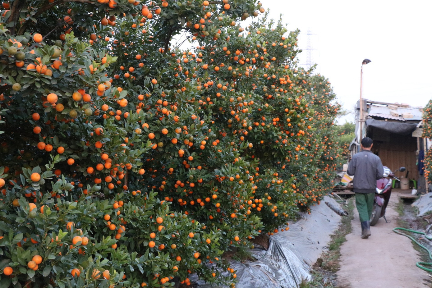 Ông Minh cho biết, thương lái đến vườn ông đặt cọc từ cuối tháng 11 dương lịch, đánh dấu từng cây và lưu lại vườn đến sát Tết mới thu gom. Vì vậy, dù đã bán được hàng, chủ vườn vẫn phải chăm sóc nghiêm ngặt để cây giữ được màu sắc rực rỡ, quả chín tự nhiên đúng thời điểm khách nhận hàng.