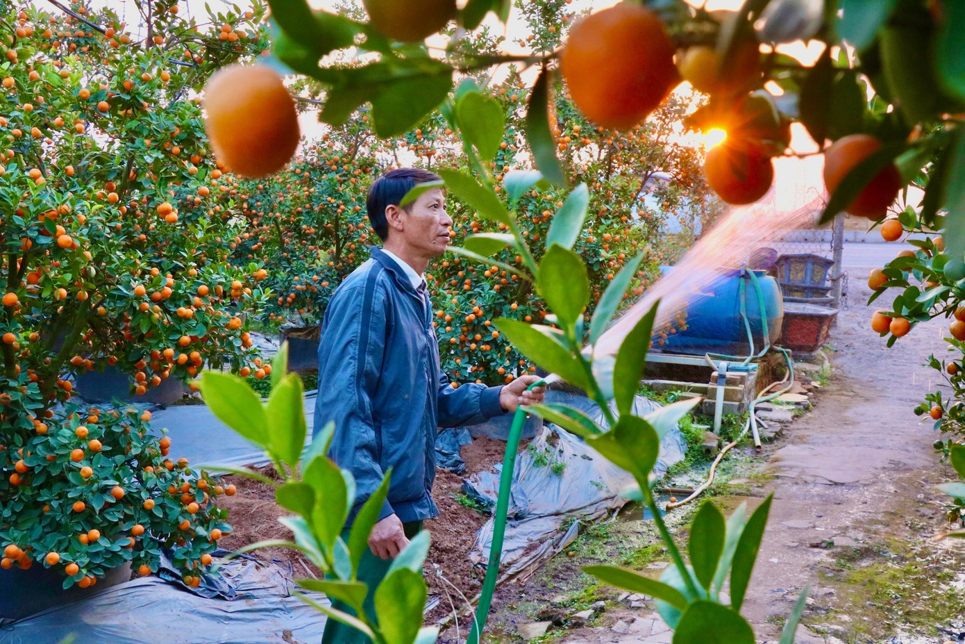 Tại vườn quất nhà ông Đinh Hữu Minh, những quả quất đã sớm chuyển vàng. Gia đình ông hiện có 3 vườn quất với đủ loại từ quất chậu nhỏ, quất bonsai mini đến quất dáng thế. Ông Minh cho biết, quất Văn Giang có lợi thế lớn về mẫu mã và phân khúc giá. Để cây nở hoa, kết quả đúng dịp Tết, từ tháng 9-10 âm lịch, các nhà vườn bước vào giai đoạn “nước rút”: gò thế, tạo dáng, tỉa quả, cắt cành, kích lộc - công việc đòi hỏi kỹ thuật cao và sự kiên nhẫn.