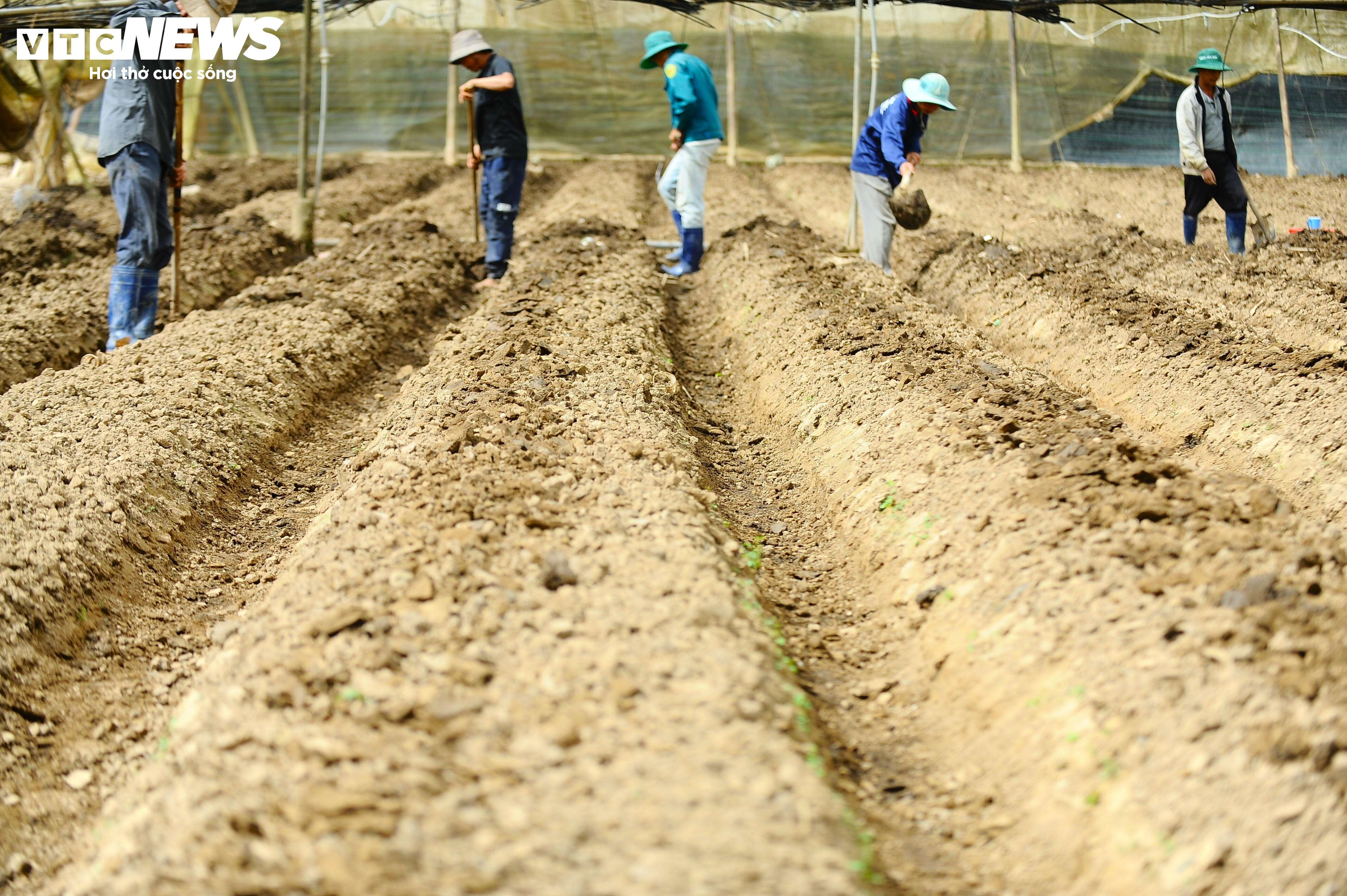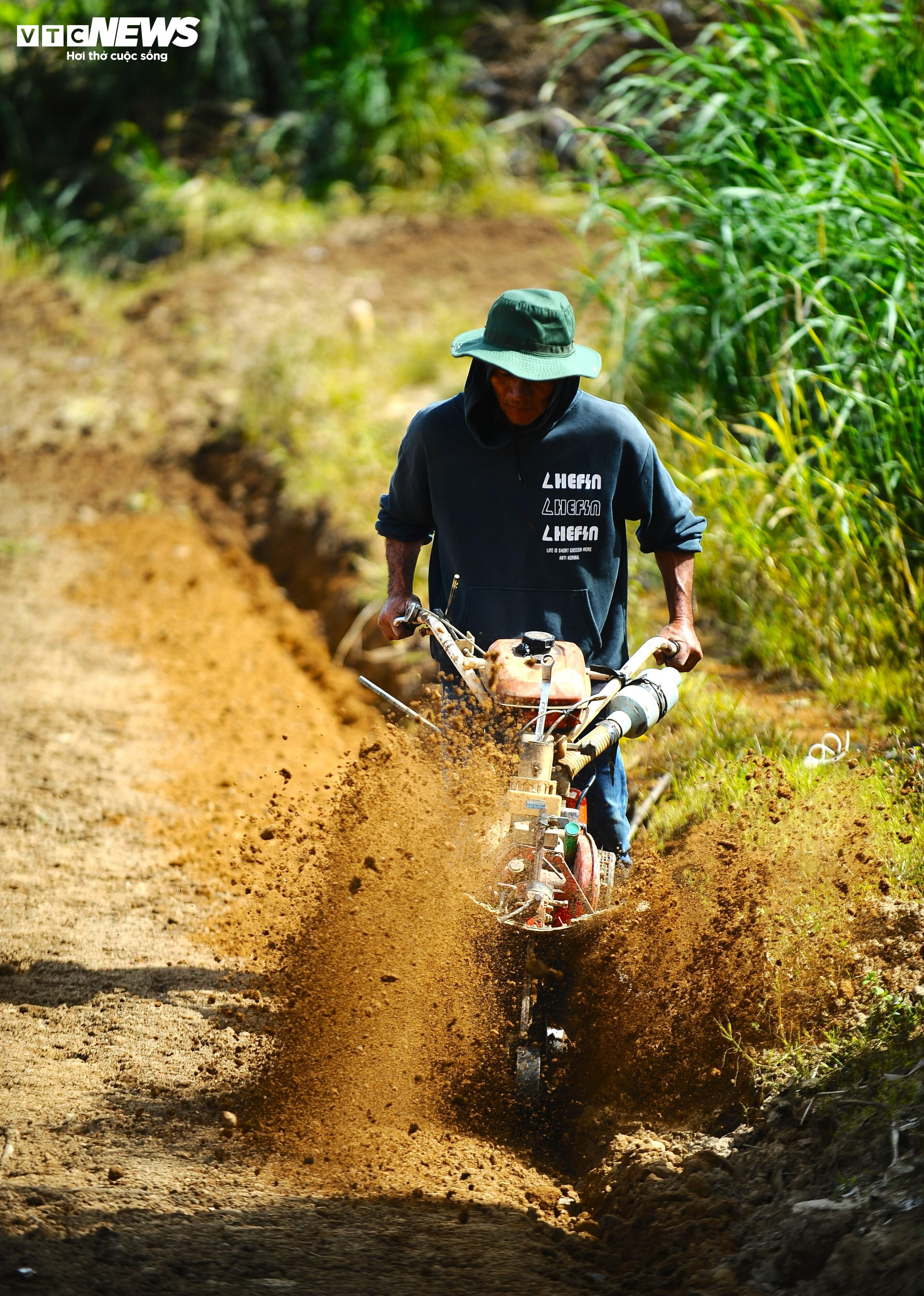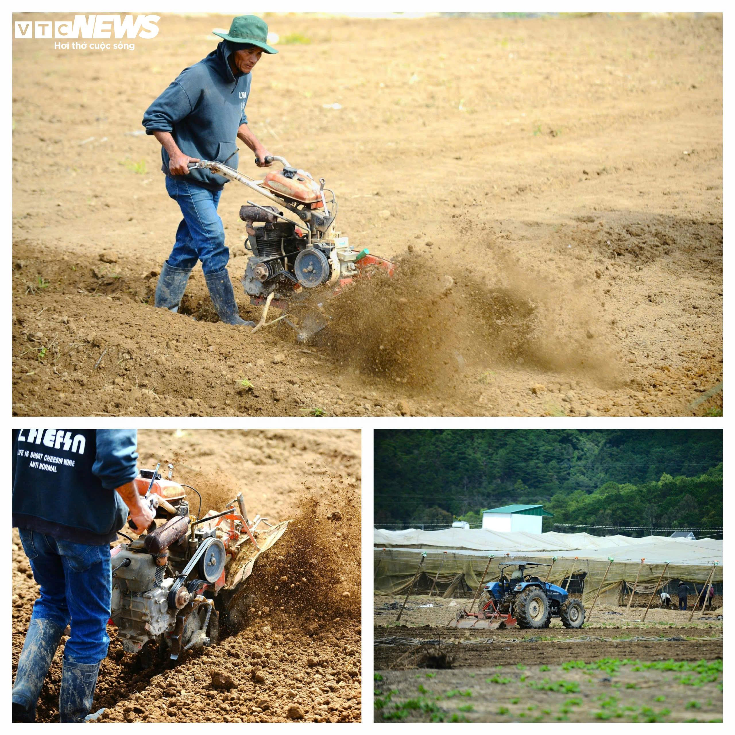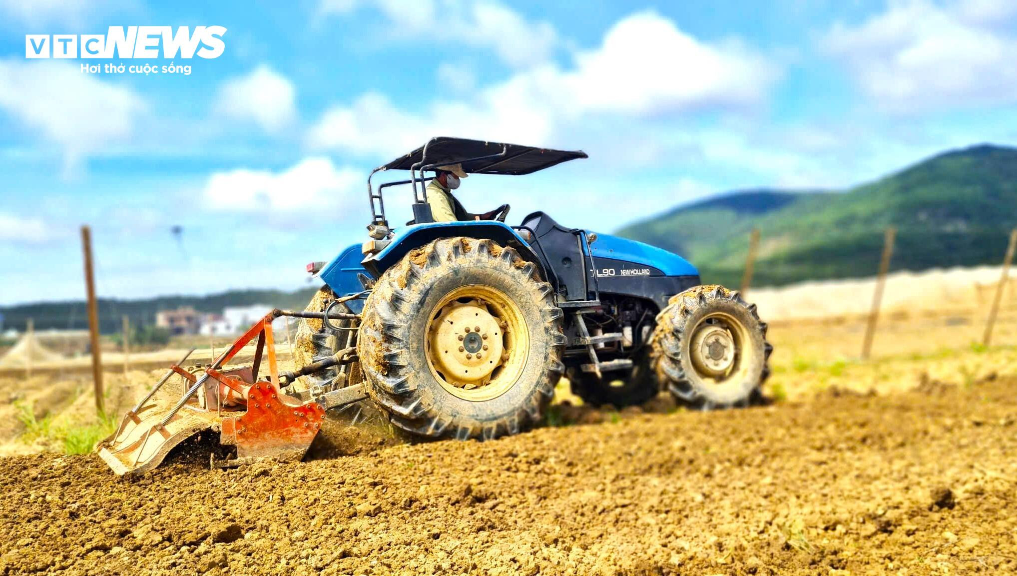 Máy cày được huy động để đánh và ngào đất thật tơi trước khi xuống giống.