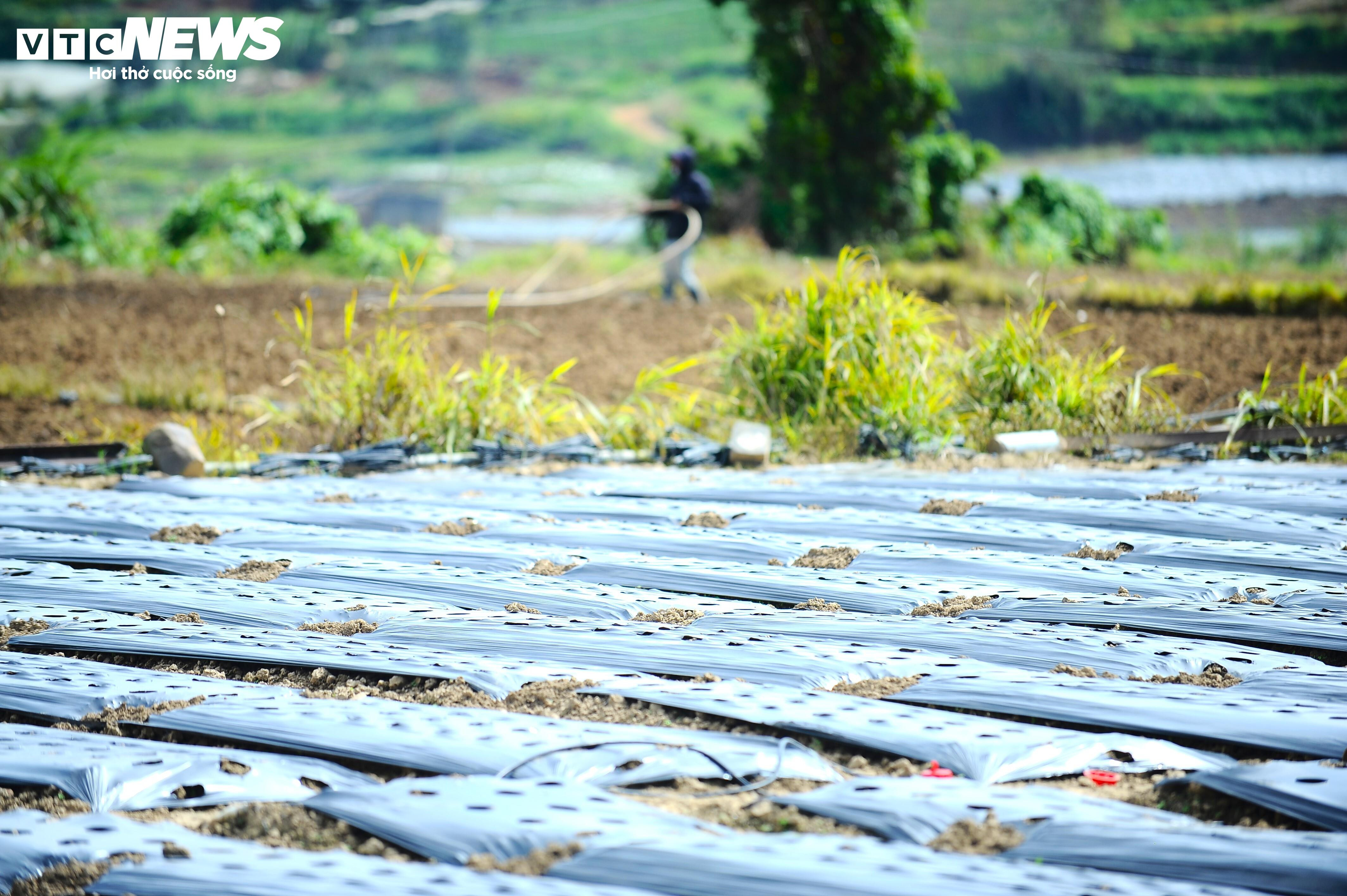 Một vườn rau vừa được phủ bạt lên để chuẩn bị xuống giống tại xã Ka Đô.