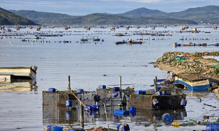 Hơn 1.600 lồng bè nuôi tôm hùm của người dân vịnh Xuân Đài, phường Sông Cầu bị thiệt hại sau bão số 13.