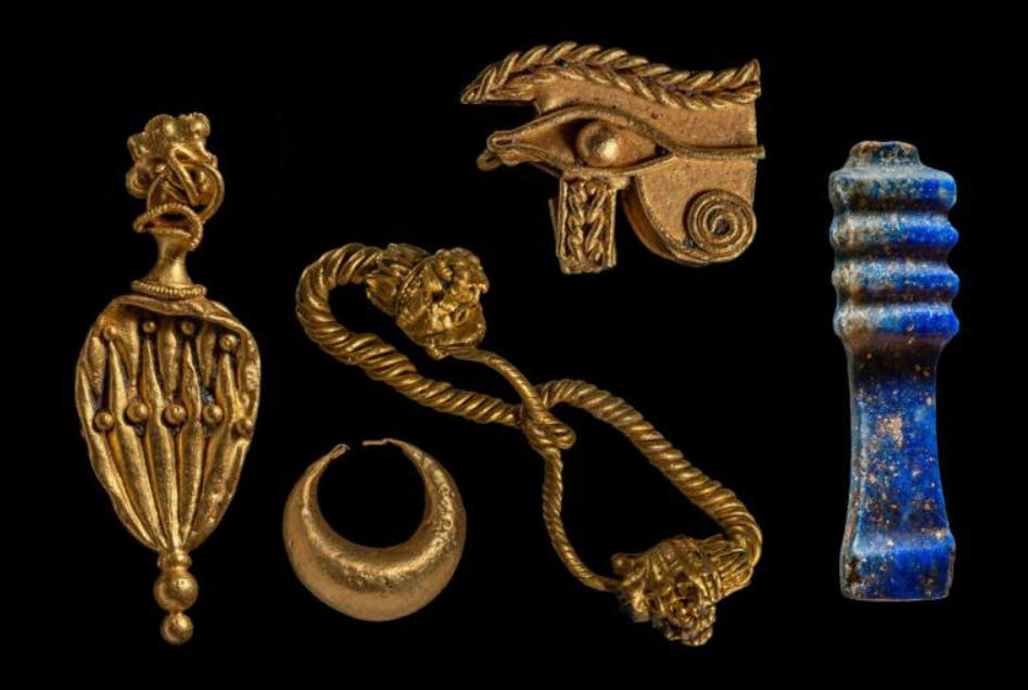Nhiều đồ trang sức bằng vàng và tiền xu có niên đại từ thời vua Ptolemy II cũng được tìm thấy tại tàn tích ngôi đền. Ảnh: @Bộ Cổ vật Ai Cập.