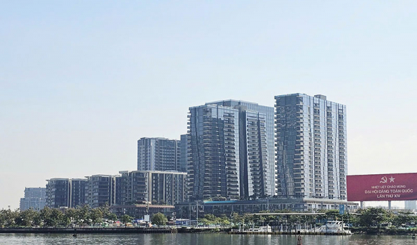 Tòa nhà cao tầng bên sông Sài Gòn phía bờ Thủ Thiêm.