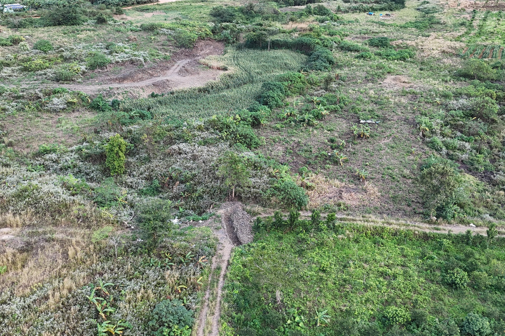 Khu đất phía dưới chân núi lửa Nâm Kar khô cằn, chỉ có cỏ dại và chuối cô đơn