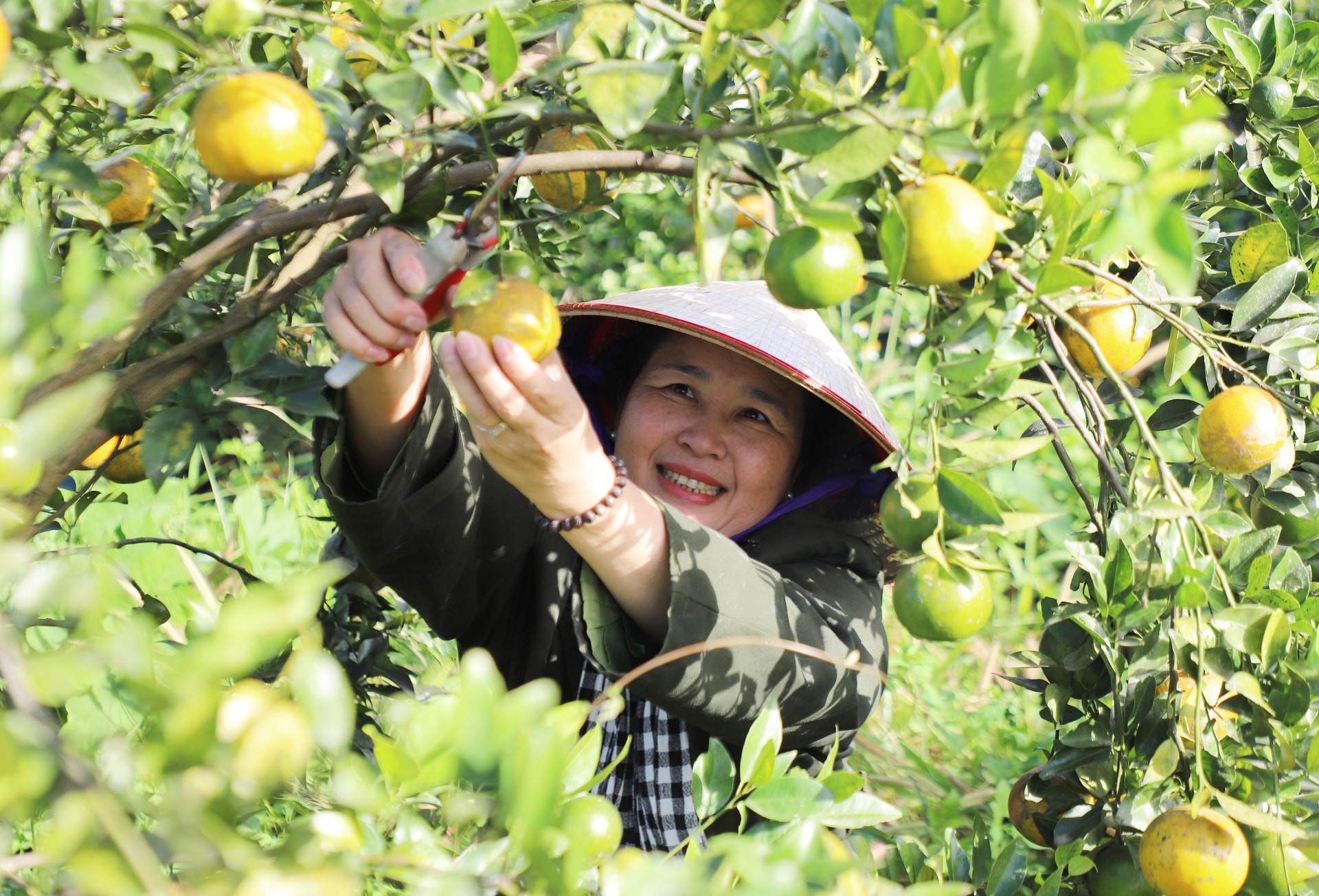 Chị Nguyễn Thị Mai, chủ nhân vườn cam, quýt dưới chân núi lửa Nâm Kar