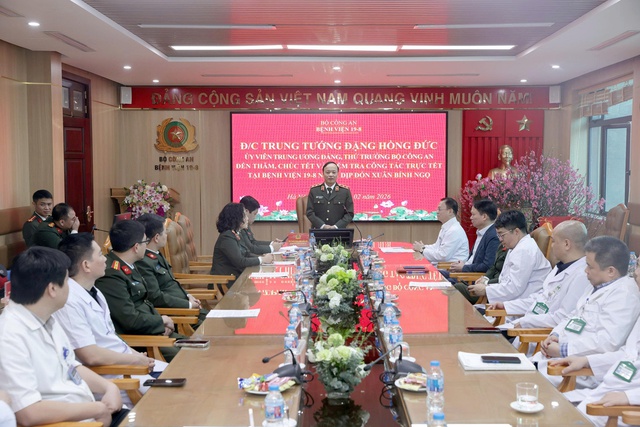 Trung tướng Đặng Hồng Đức, Ủy viên Trung ương Đảng, Thứ trưởng Bộ Công an trong buổi làm việc tại BV 19-8 ngày 29 Tết.