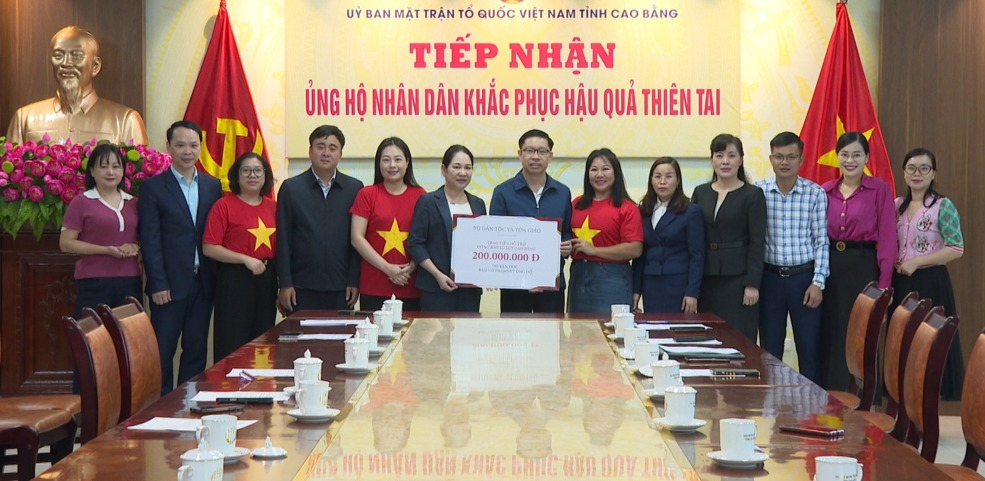 Đoàn công tác trao tặng 200 triệu đồng tiền mặt từ nguồn kinh phí ủng hộ của bạn đọc Báo Vietnamnet dành cho nhân dân tỉnh Cao Bằng.