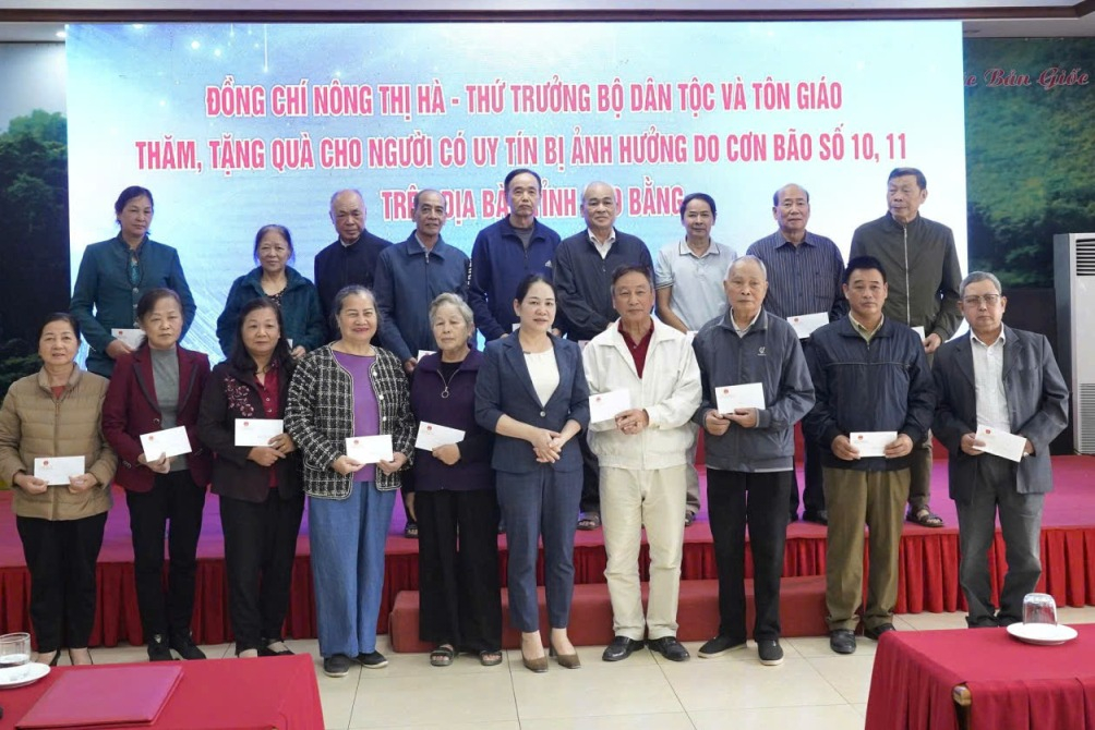 Tại chương trình, Thứ trưởng Nông Thị Hà trao 114 suất quà cho người có uy tín tại các xã, phường: Thục Phán, Nùng Trí Cao, Canh Tân, Trùng Khánh, Đức Long, Quảng Uyên, Phục Hòa, Hạnh Phúc và Độc Lập. Trong đó, 64 suất quà dành cho các hộ bị ảnh hưởng nặng bởi thiên tai, tổng trị giá 153 triệu đồng.