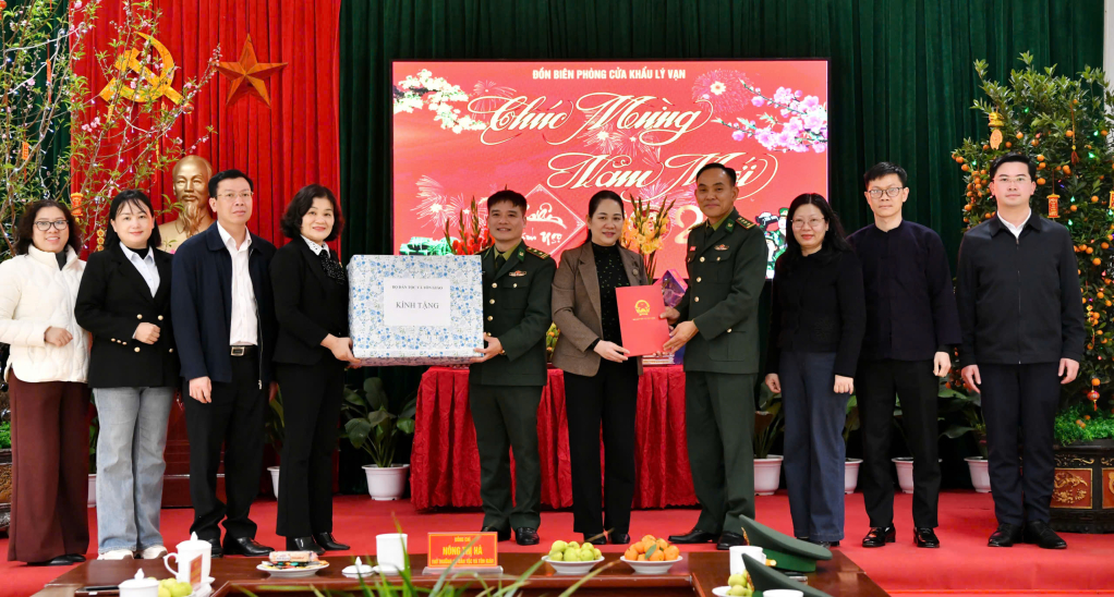 Tiếp đó, đoàn công tác thăm và tặng quà Tết cán bộ, chiến sĩ Đồn Biên phòng Cửa khẩu Lý Vạn. Gửi lời chúc sức khỏe, động viên cán bộ, chiến sĩ đơn vị tiếp tục phối hợp chặt chẽ với chính quyền cơ sở, phát huy hiệu quả công tác dân vận, gắn bảo vệ chủ quyền lãnh thổ với chăm lo đời sống nhân dân, góp phần giữ vững an ninh chính trị, trật tự an toàn xã hội trên tuyến biên giới.