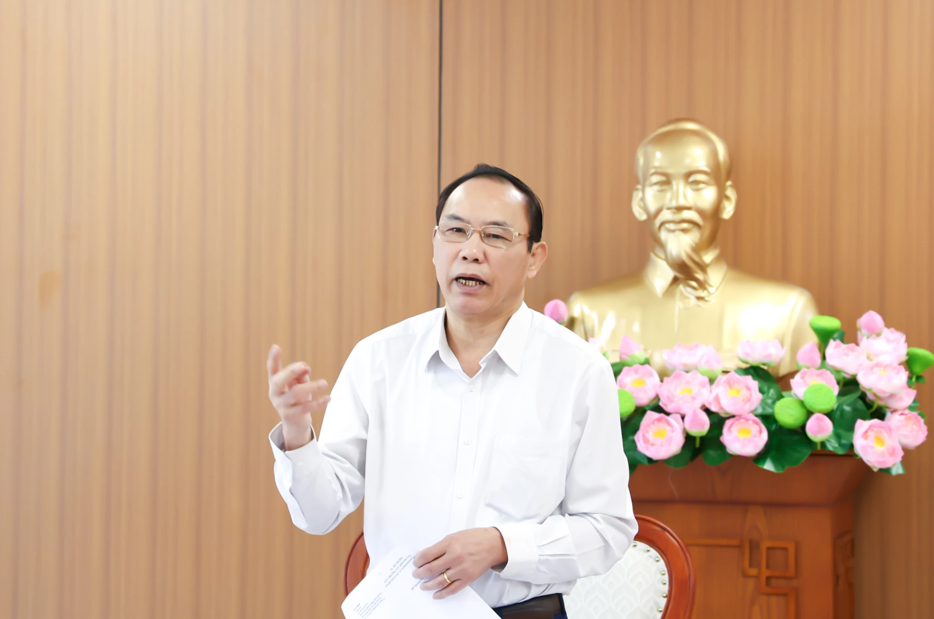 Thứ trưởng Bộ Nông nghiệp và Môi trường Phùng Đức Tiến phát biểu chỉ đạo tại cuộc họp.