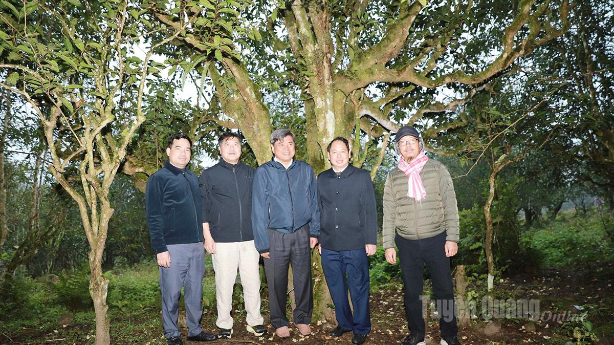 Đoàn công tác của Bộ Nông nghiệp và Môi trường khảo sát rừng chè Shan tuyết cổ thụ trên địa bàn xã Hồ Thầu.
