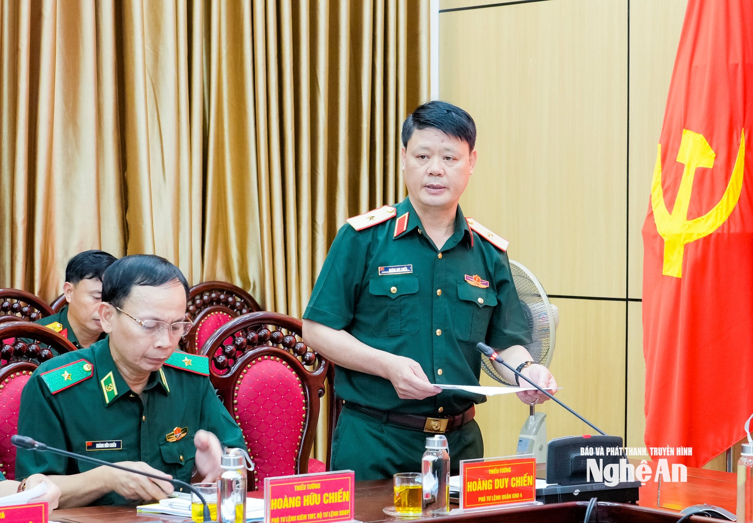 Thiếu tướng Hoàng Duy Chiến - Phó Tư lệnh Quân khu 4 phát biểu tại buổi làm việc. Ảnh: Phạm Bằng