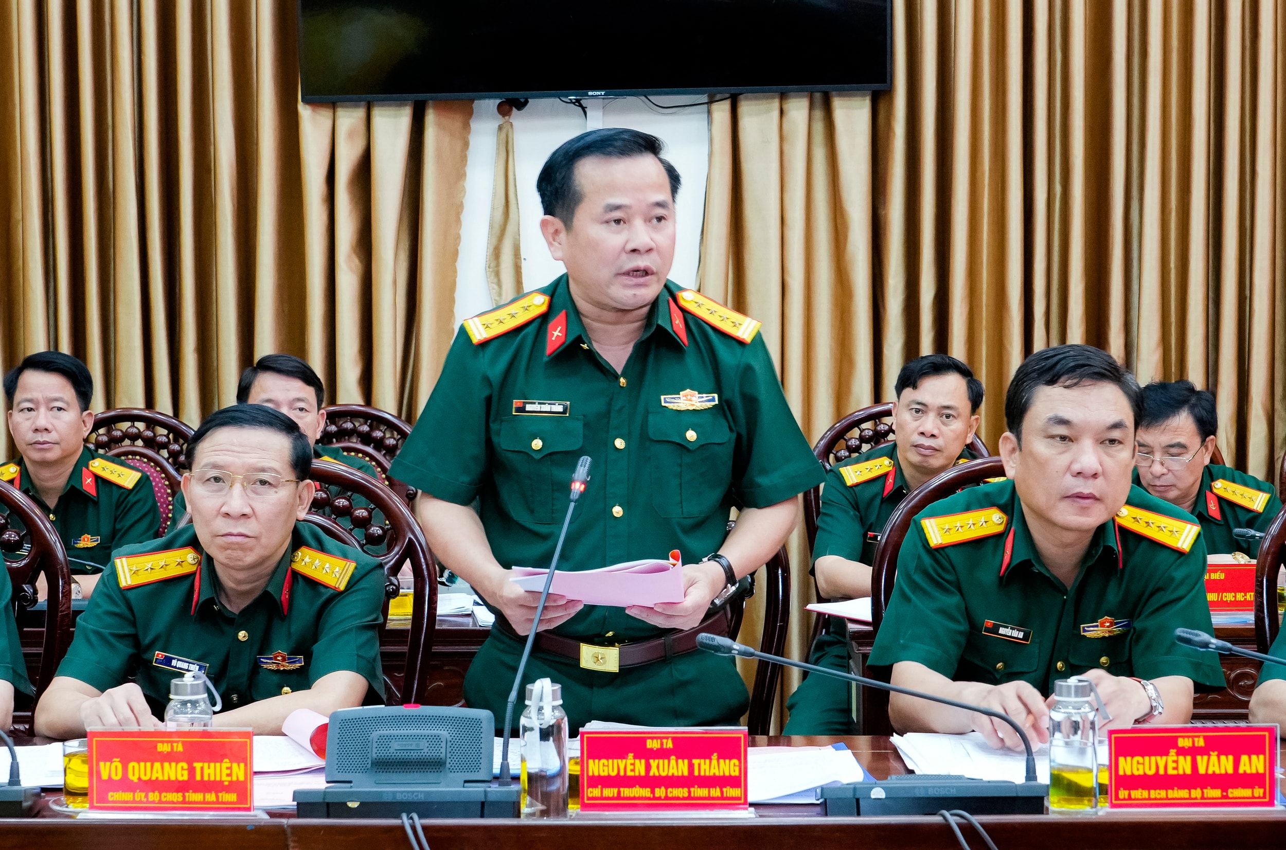 Đại tá Nguyễn Xuân Thắng - Chỉ huy trưởng Bộ Chỉ huy Quân sự tỉnh Hà Tĩnh phát biểu tại buổi làm việc. Ảnh: Phạm Bằng