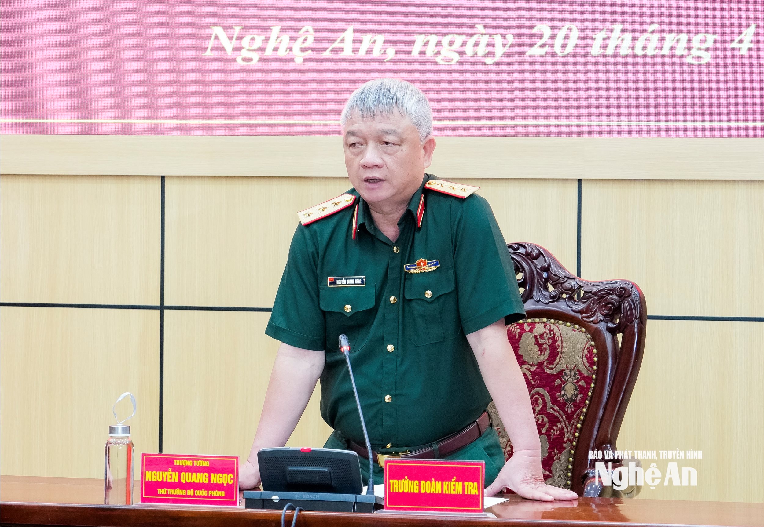 Thượng tướng Nguyễn Quang Ngọc - Ủy viên Trung ương Đảng, Ủy viên Quân ủy Trung ương, Thứ trưởng Bộ Quốc phòng kết luận buổi làm việc. Ảnh: Phạm Bằng