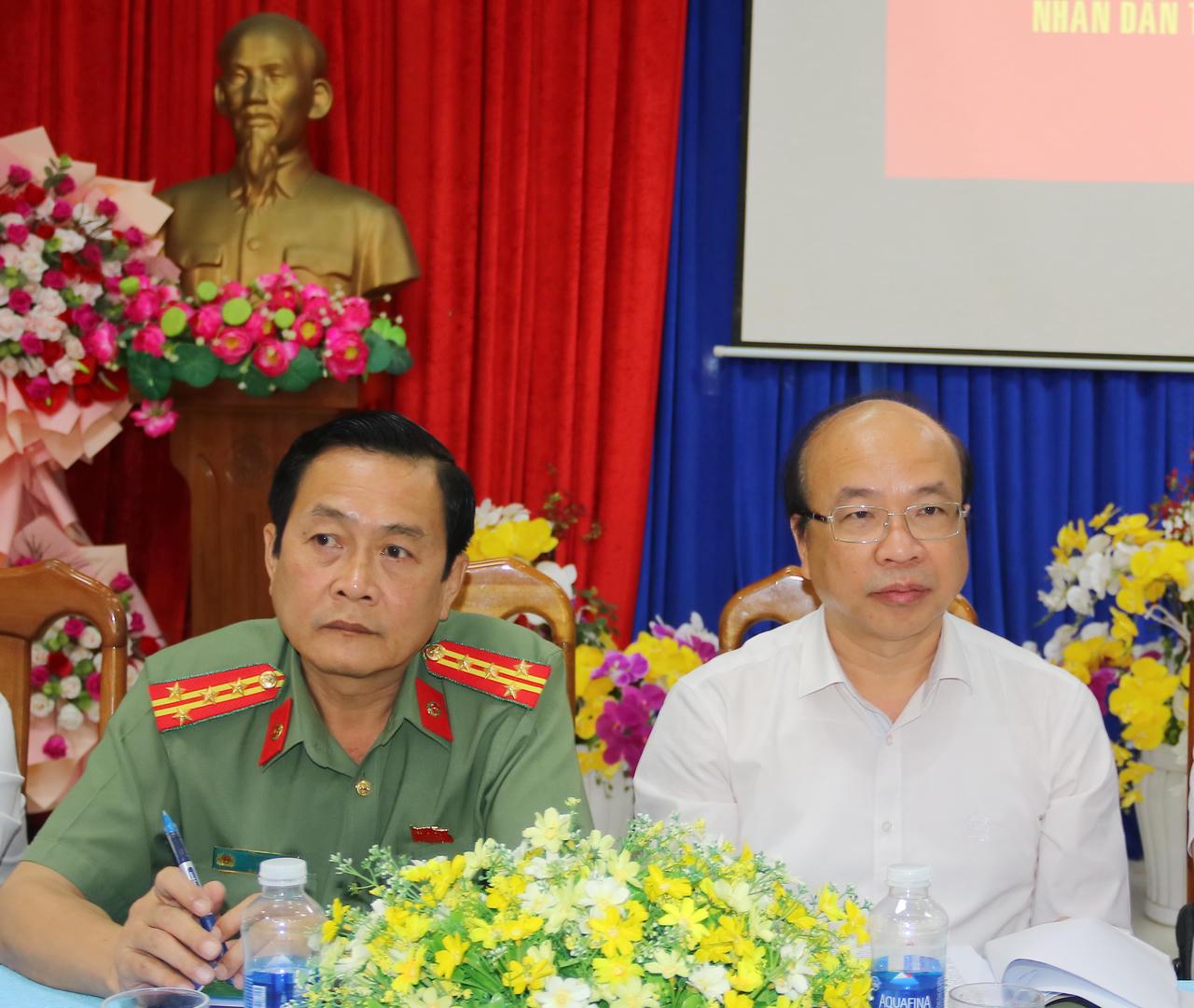 Đại tá Hồ Việt Triều – Ủy viên BTV Tỉnh ủy, Bí thư Đảng ủy, Giám đốc Công an tỉnh Cà Mau, đại diện cho các ứng cử ĐBQH khóa XVI, nghiêm túc ghi nhận các ý kiến của cử tri.
