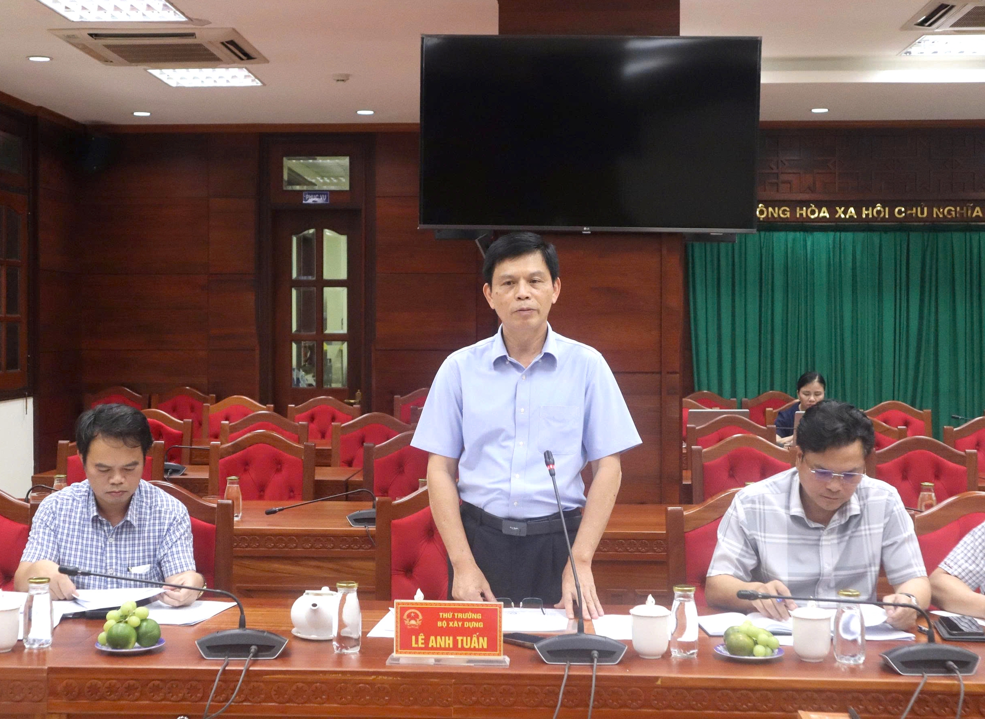 Thứ trưởng Bộ Xây dựng Lê Anh Tuấn làm việc với lãnh đạo UBND tỉnh Đắk Lắk về tình hình xây dựng các dự án trọng điểm trên địa bàn. Ảnh: H.T