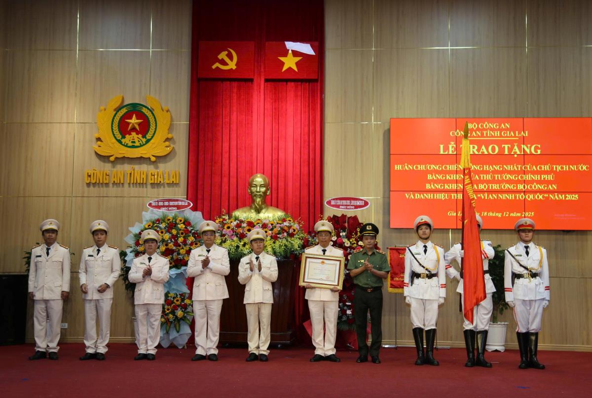Nhân dịp này, Phòng An ninh điều tra Công an tỉnh Gia Lai được trao tặng Huân chương Chiến công hạng Nhất của Chủ tịch nước; 1 tập thể và 5 cá nhân được Thủ tướng Chính phủ tặng Bằng khen; 3 tập thể và 3 cá nhân được Bộ Công an tặng Bằng khen; 18 tập thể dẫn đầu phong trào thi đua "Vì an ninh Tổ quốc" năm 2025 được trao Cờ thi đua của Bộ Công an.