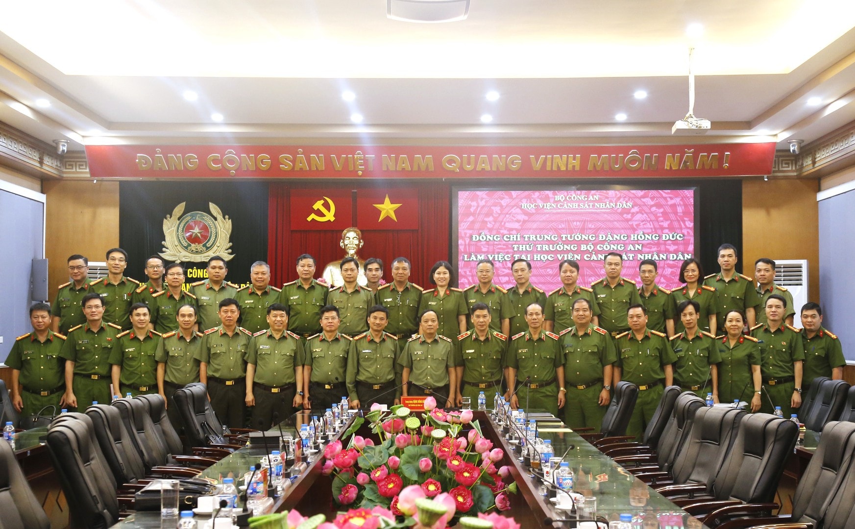Phát biểu tại buổi làm việc, Thứ trưởng Đặng Hồng Đức nhấn mạnh, Học viện Cảnh sát nhân dân là một trong những cơ sở giáo dục hàng đầu của lực lượng Công an nhân dân.