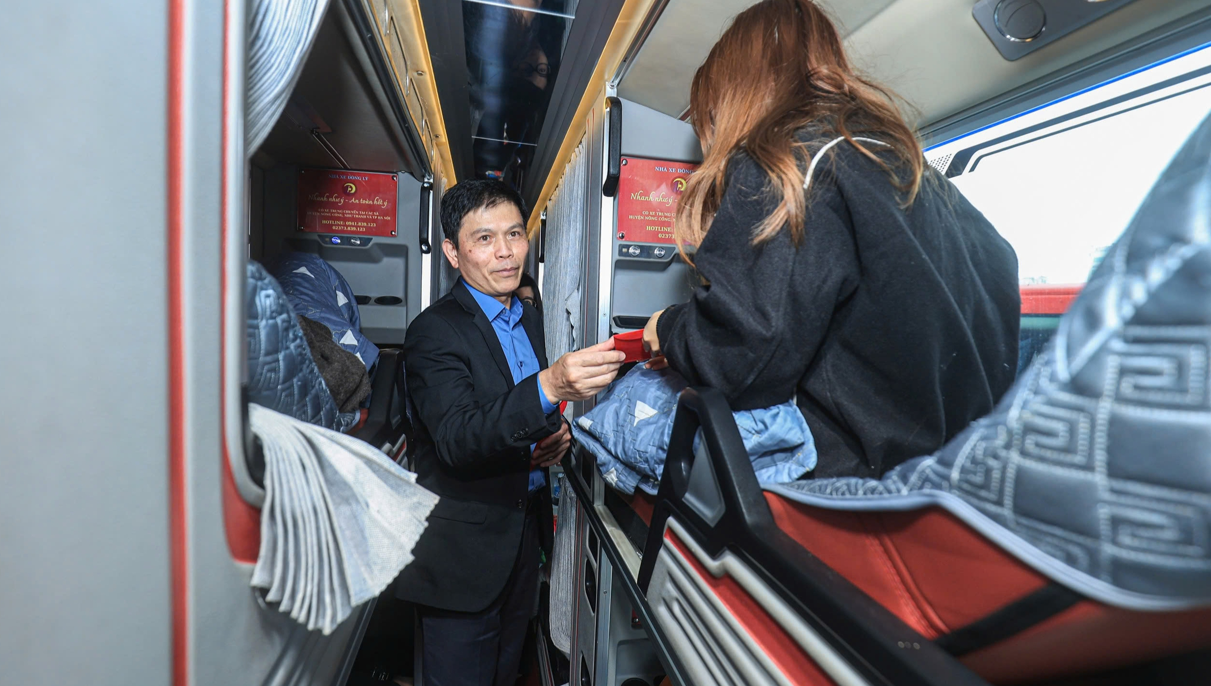Trực tiếp lên xe khách BKS 36B-014.16 tuyến Nông Cống (Thanh Hóa), Thứ trưởng kiểm tra điều kiện an toàn kỹ thuật, việc chấp hành quy định của đơn vị vận tải và thái độ phục vụ hành khách.