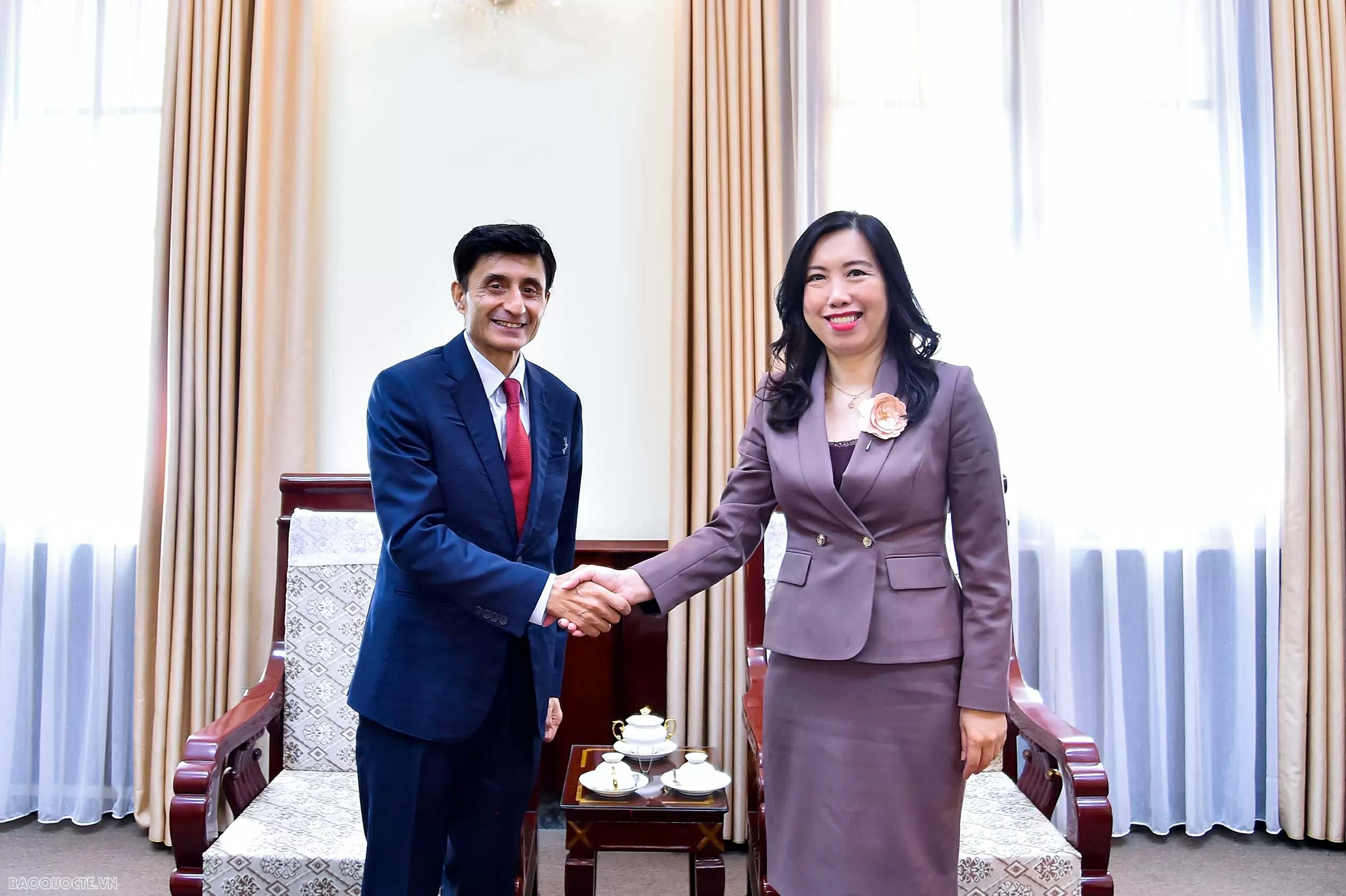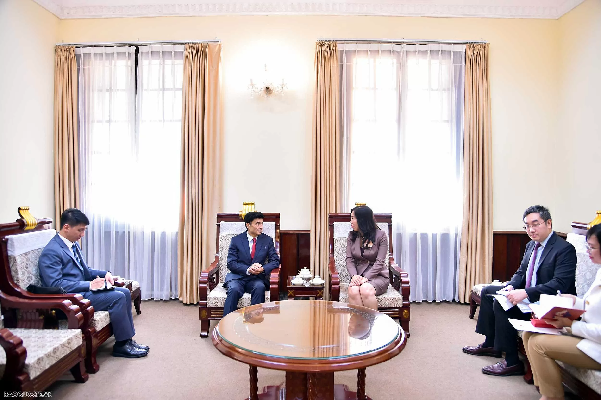 Thứ trưởng Ngoại giao Lê Thị Thu Hằng tiếp ông Faisal Shahkar, Cố vấn cảnh sát Liên hợp quốc nhân dịp thăm làm việc tại Việt Nam. (Ảnh: Quang Hòa)