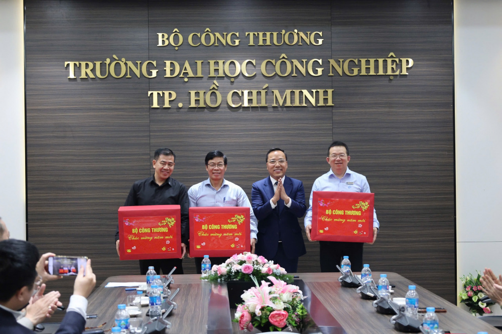 Thứ trưởng Nguyễn Hoàng Long tặng quà chúc mừng của Bộ Công Thương cho tập thể 3 trường Đại học, Cao đẳng