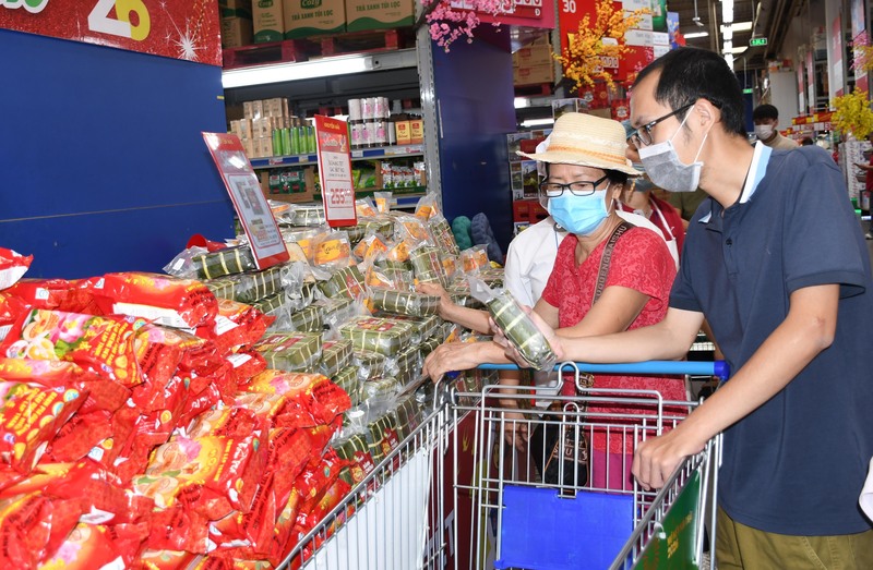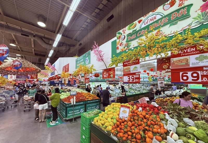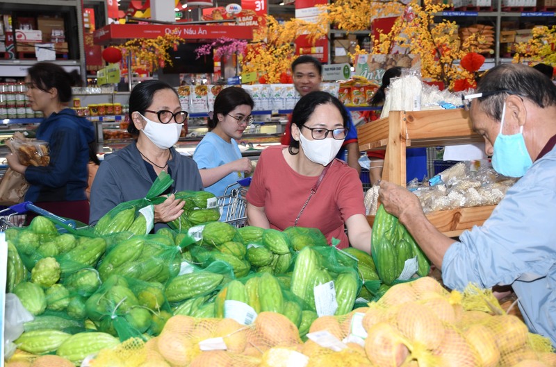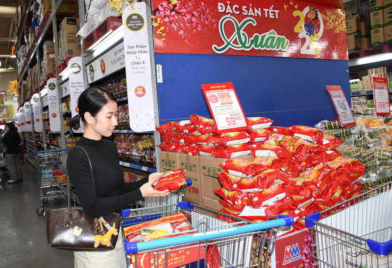 Siêu thị hoạt động xuyên Tết, chỉ nghỉ chiều 30 và ngày mùng 1, sau đó mở cửa trở lại, bảo đảm nguồn cung liên tục, phục vụ người dân mua sắm thuận tiện, an tâm trong những ngày Tết. Ảnh: Thanh Minh
