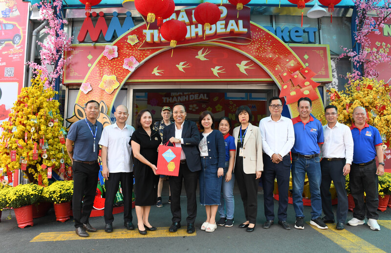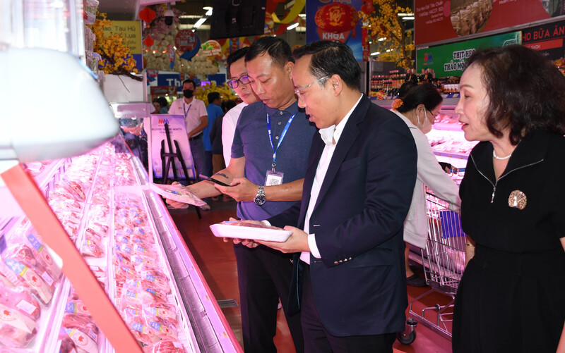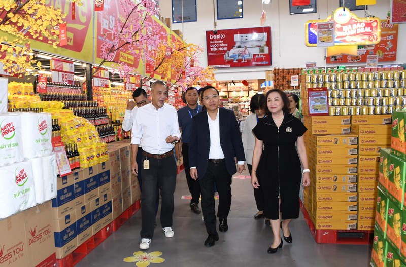 Đoàn Công tác của Bộ Công Thương do Thứ trưởng Nguyễn Hoàng Long làm Trưởng đoàn kiểm tra công tác chuẩn bị nguồn hàng hóa phục vụ tết Nguyên đán Bính Ngọ 2026 tại Siêu thị MM Mega Market An Phú. Ảnh: Thanh Minh