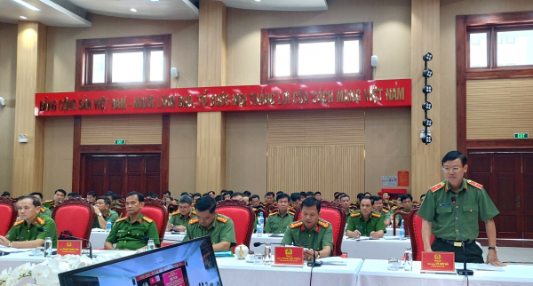 Thiếu tướng Vũ Như Hà, Giám đốc Công an tỉnh Tây Ninh phát biểu tại Hội nghị.