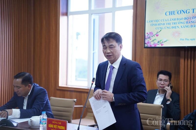 Báo cáo tại buổi làm việc, ông Đặng Việt Phương - Phó Giám đốc Sở Công Thương tỉnh Phú Thọ cho biết, thực hiện chính quyền 2 cấp, tỉnh Phú Thọ mới sáp nhập trên cơ sở của 3 tỉnh Hòa Bình, Vĩnh Phúc và Phú Thọ. Tính đến thời điểm hiện tại, trên địa bàn tỉnh hiện có 29 siêu thị, 08 trung tâm thương mại, 381 chợ, 03 thương nhân đầu mối xăng dầu, 11 thương nhân phân phối xăng dầu, 599 cửa hàng xăng dầu, 04 kho xăng dầu (với dung tích 33.750 m3), 17 thương nhân kinh doanh mua bán khí.