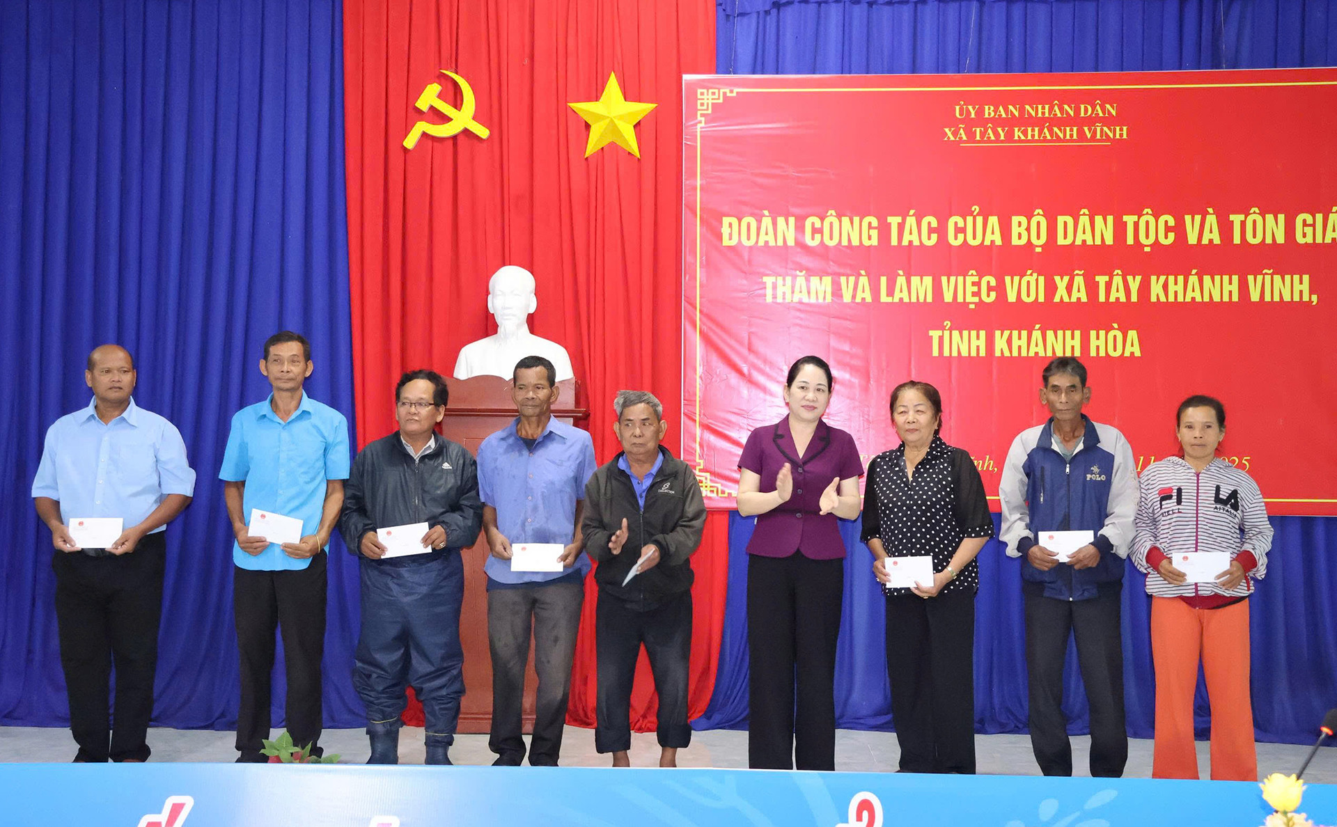 Chiều 18/11, sau khi dự lễ khai giảng năm học 2025-2026 và kỷ niệm Ngày Nhà giáo Việt Nam tại Trường Dự bị Đại học Dân tộc Trung ương Nha Trang, Thứ trưởng Bộ Dân tộc và Tôn giáo Nông Thị Hà đã thăm và làm việc với xã Tây Khánh Vĩnh (tỉnh Khánh Hòa), tặng quà người dân nơi đây.