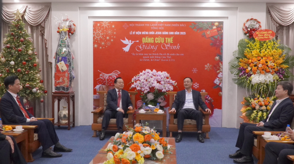 Cùng ngày, tới thăm, chúc mừng Lễ Giáng sinh 2025, đón năm mới 2026 tại Hội thánh Tin lành Việt Nam (miền Bắc), Thứ trưởng Phạm Thế Tùng gửi những lời chúc mừng tốt đẹp tới Mục sư Bùi Văn Sản, Hội trưởng Hội thánh Tin lành Việt Nam (miền Bắc) cùng các mục sư và cộng đồng tín hữu.