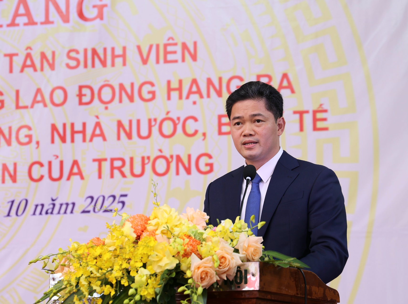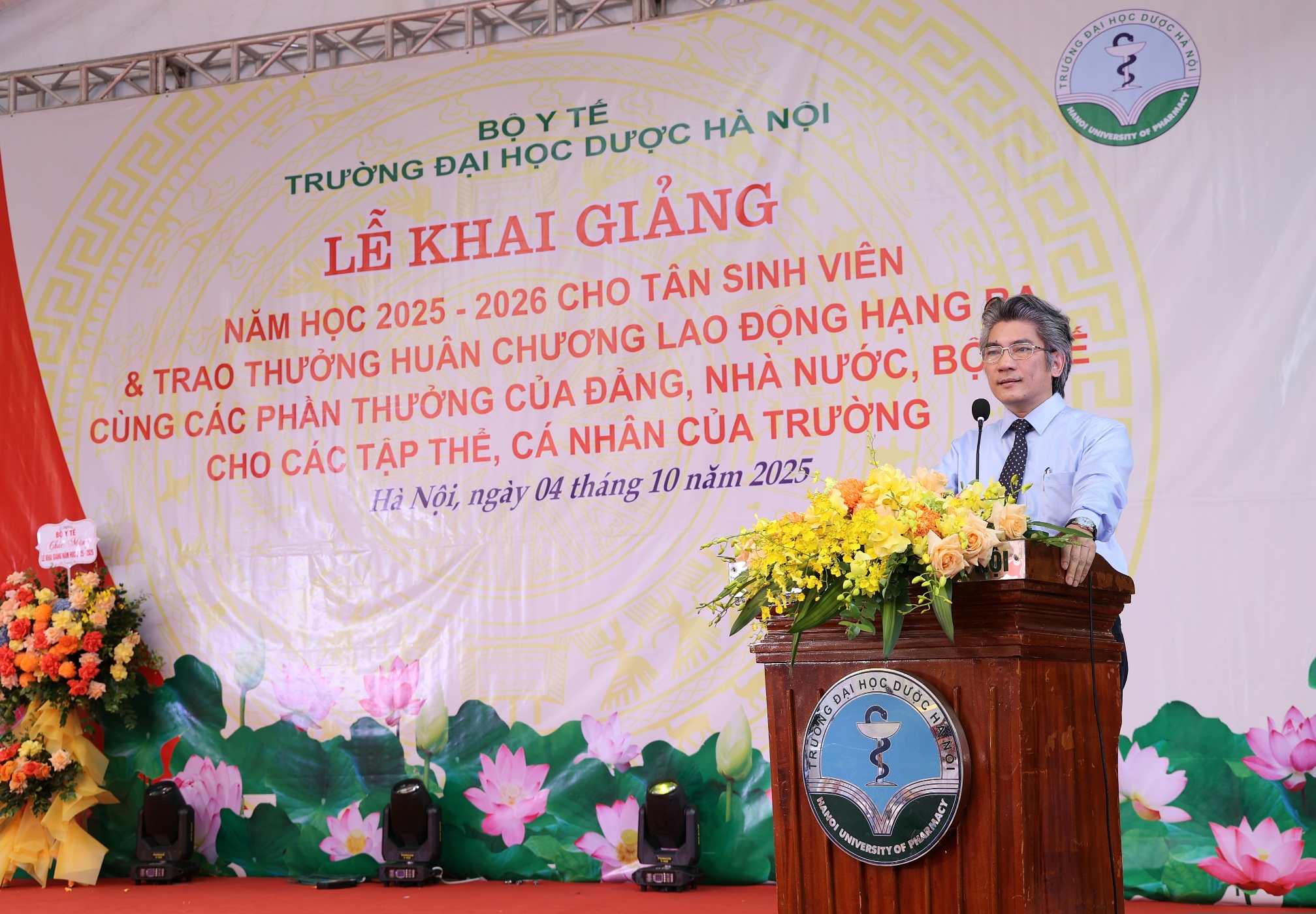 Ủy viên Dự khuyết Trung ương Đảng, Thứ trưởng Thường trực Bộ Y tế Vũ Mạnh Hà phát biểu tại lễ khai giảng năm học mới 2025-2026 của Trường Đại học Dược Hà Nội.