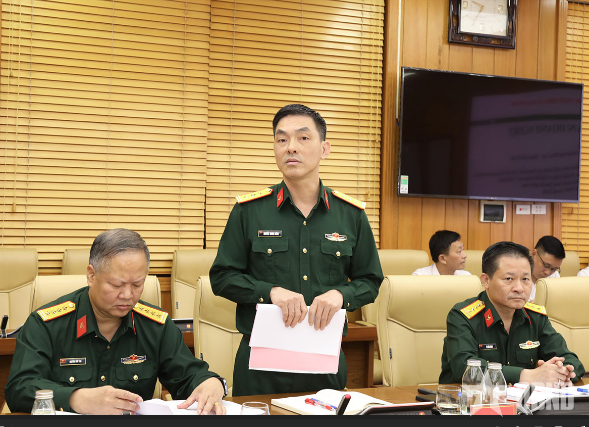 Thiếu tướng Nguyễn Trọng Thiện, Phó chủ nhiệm Tổng cục Hậu cần - Kỹ thuật phát biểu chỉ đạo tại Hội nghị.