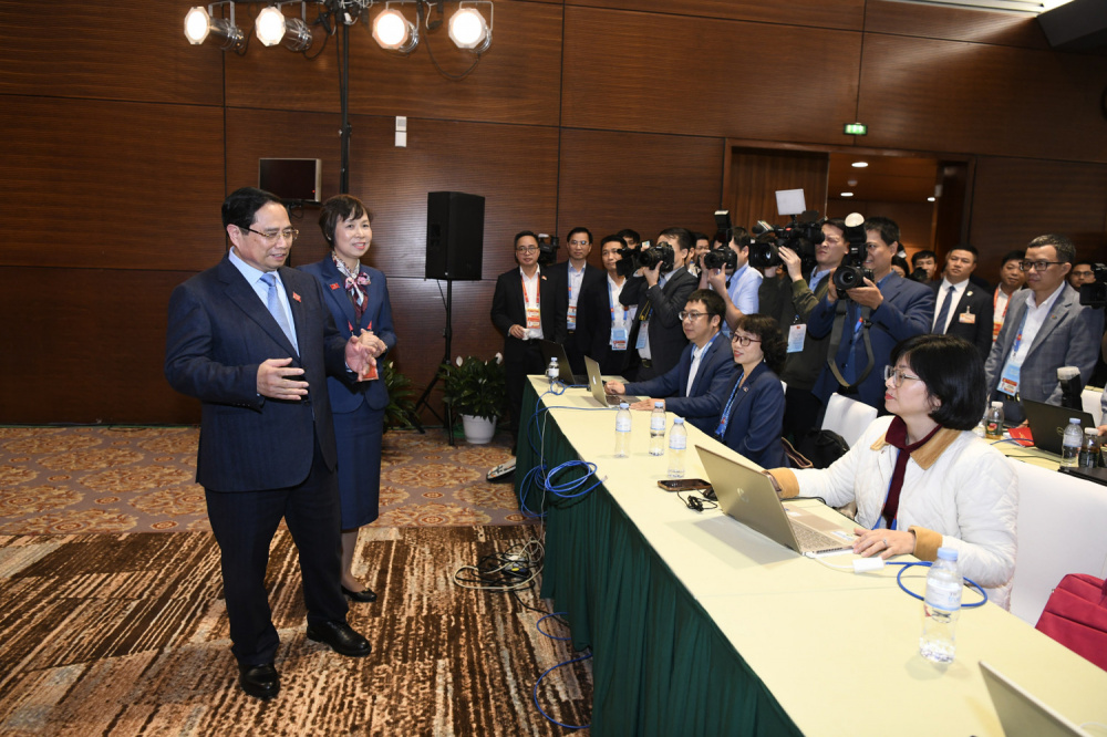 Thủ tướng Phạm Minh Chính thăm hỏi về điều kiện tác nghiệp và sinh hoạt của các phóng viên trong thời gian diễn ra Đại hội