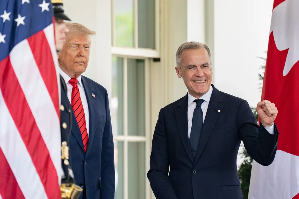 Tổng thống Mỹ Donald Trump (trái) tiếp Thủ tướng Canada - ông Mark Carney tại Nhà Trắng hồi tháng 6. Ảnh: WHITE HOUSE