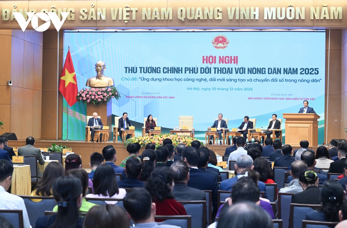 Sáng 10/12, tại Trụ sở Chính phủ, Thủ tướng Phạm Minh Chính chủ trì hội nghị Thủ tướng Chính phủ đối thoại với nông dân Việt Nam năm 2025 với chủ đề: "Ứng dụng Khoa học công nghệ, đổi mới sáng tạo và chuyển đổi số trong nông dân" với 150 đại biểu nông dân, hợp tác xã, doanh nghiệp và các chuyên gia, nhà khoa học.