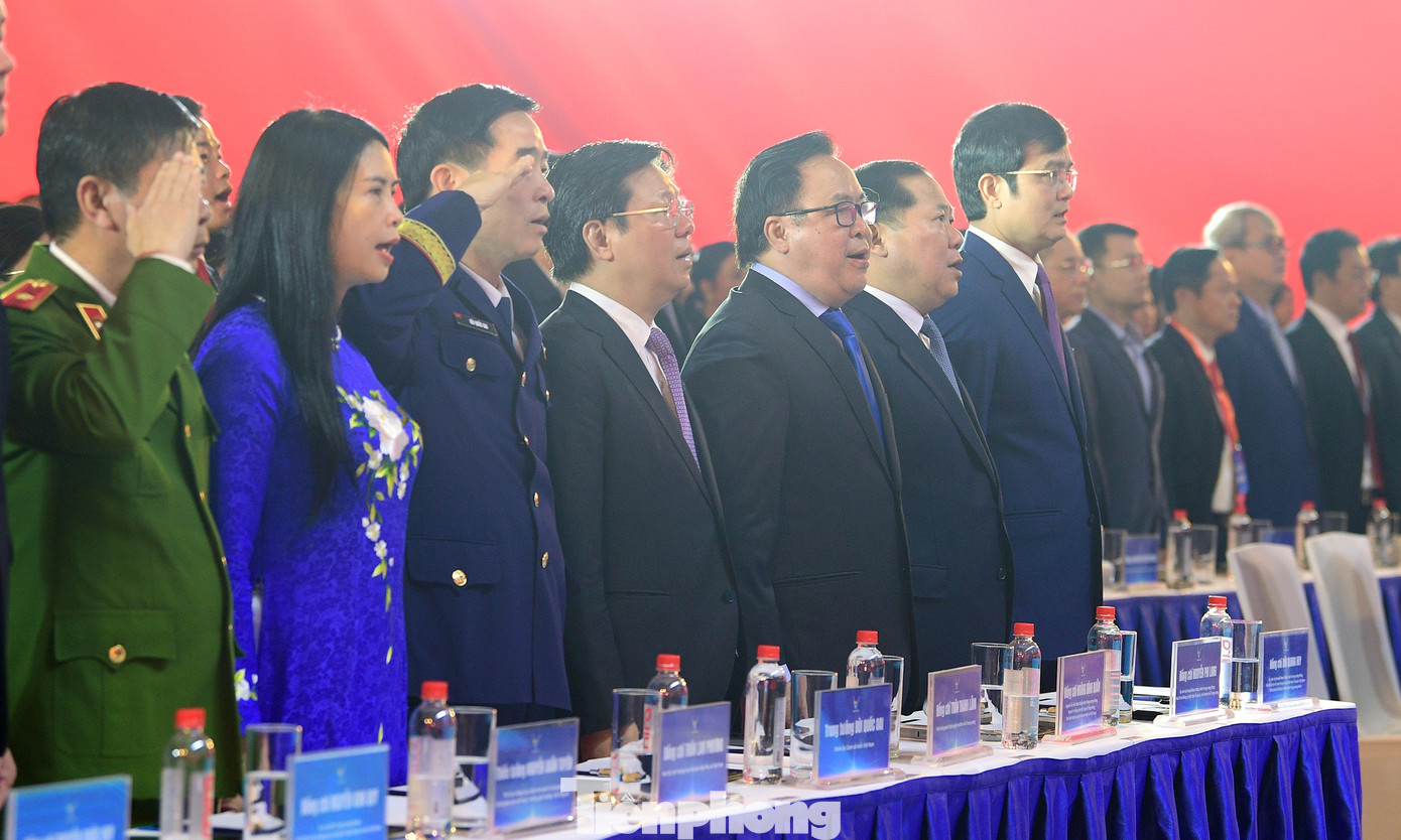 Các đại biểu tham dự phiên trọng thể Đại hội tham dự lễ chào cờ. Ảnh: Xuân Tùng