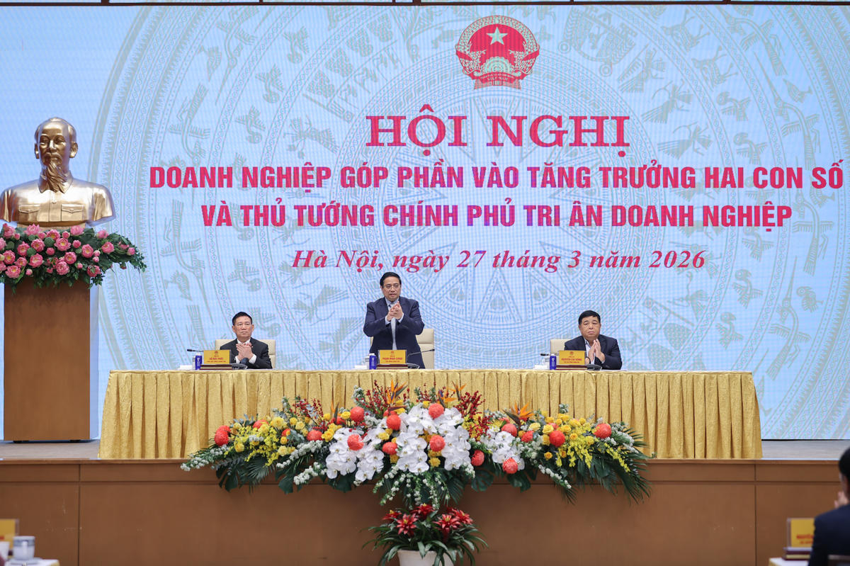 Thủ tướng Phạm Minh Chính dự Hội nghị "Doanh nghiệp góp phần vào tăng trưởng hai con số và Thủ tướng phủ tri ân doanh nghiệp - Ảnh: Nhật Bắc