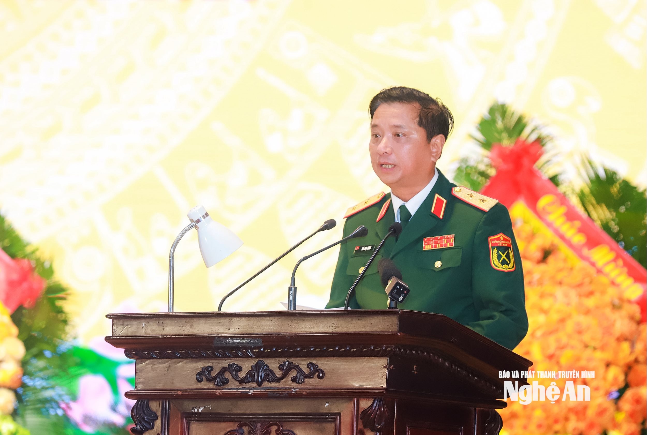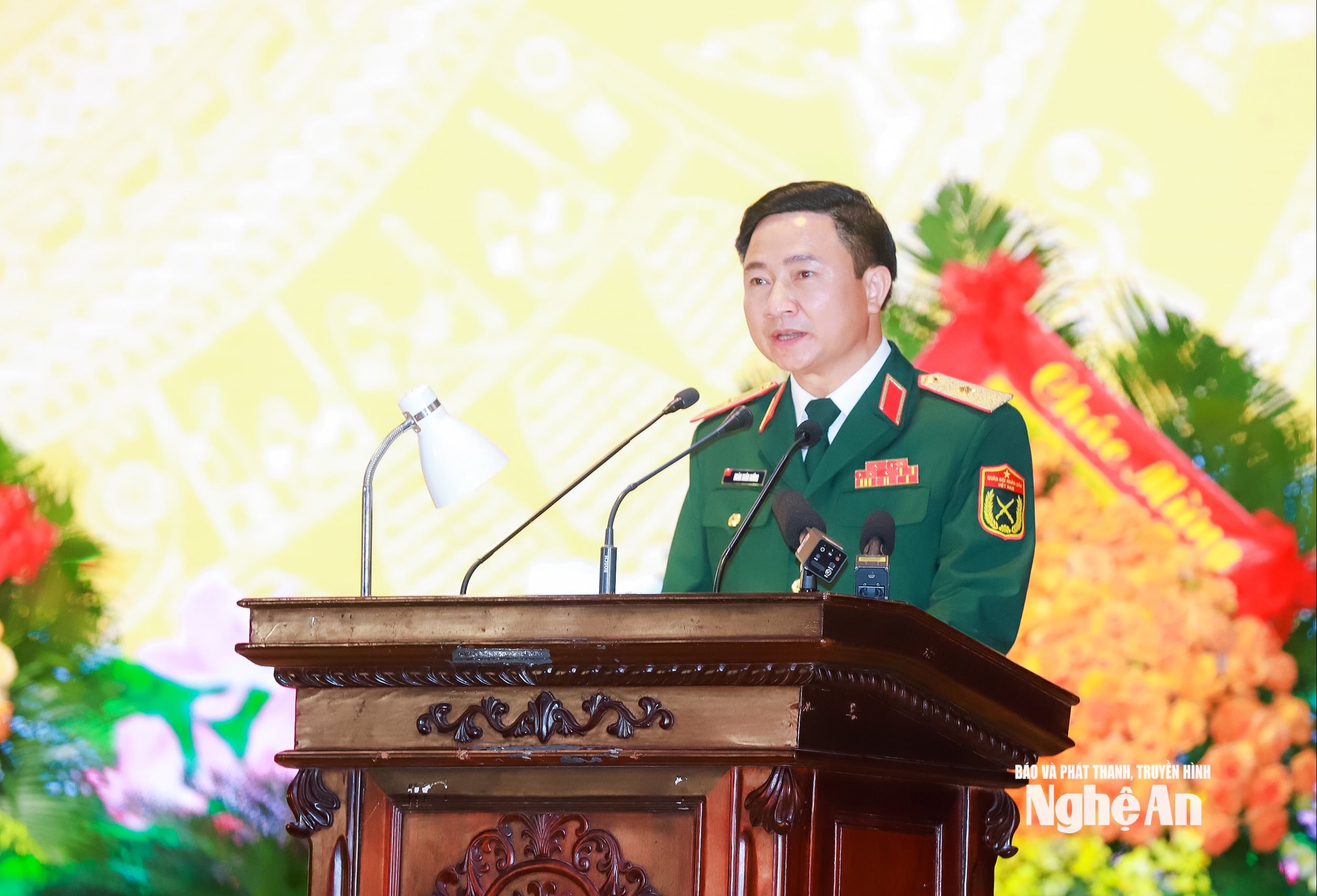 Trung tướng Hà Thọ Bình - Phó Bí thư Đảng ủy, Tư lệnh Quân khu 4 trình bày báo cáo thành tích. Ảnh: Thành Duy