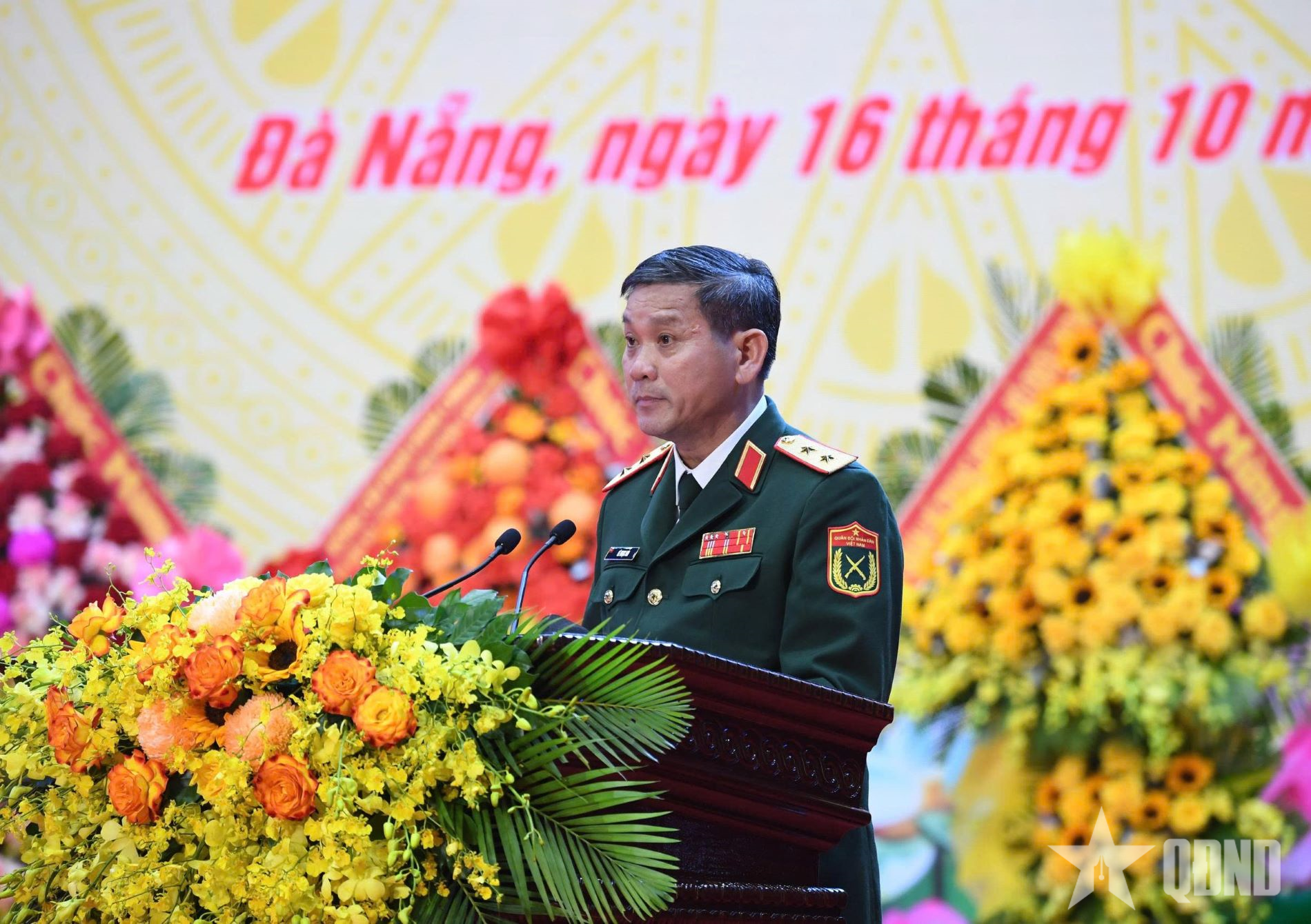 Đại tá Lương Đình Chung, Bí thư Đảng ủy, Chính ủy Quân khu 5 trình bày diễn văn kỷ niệm.