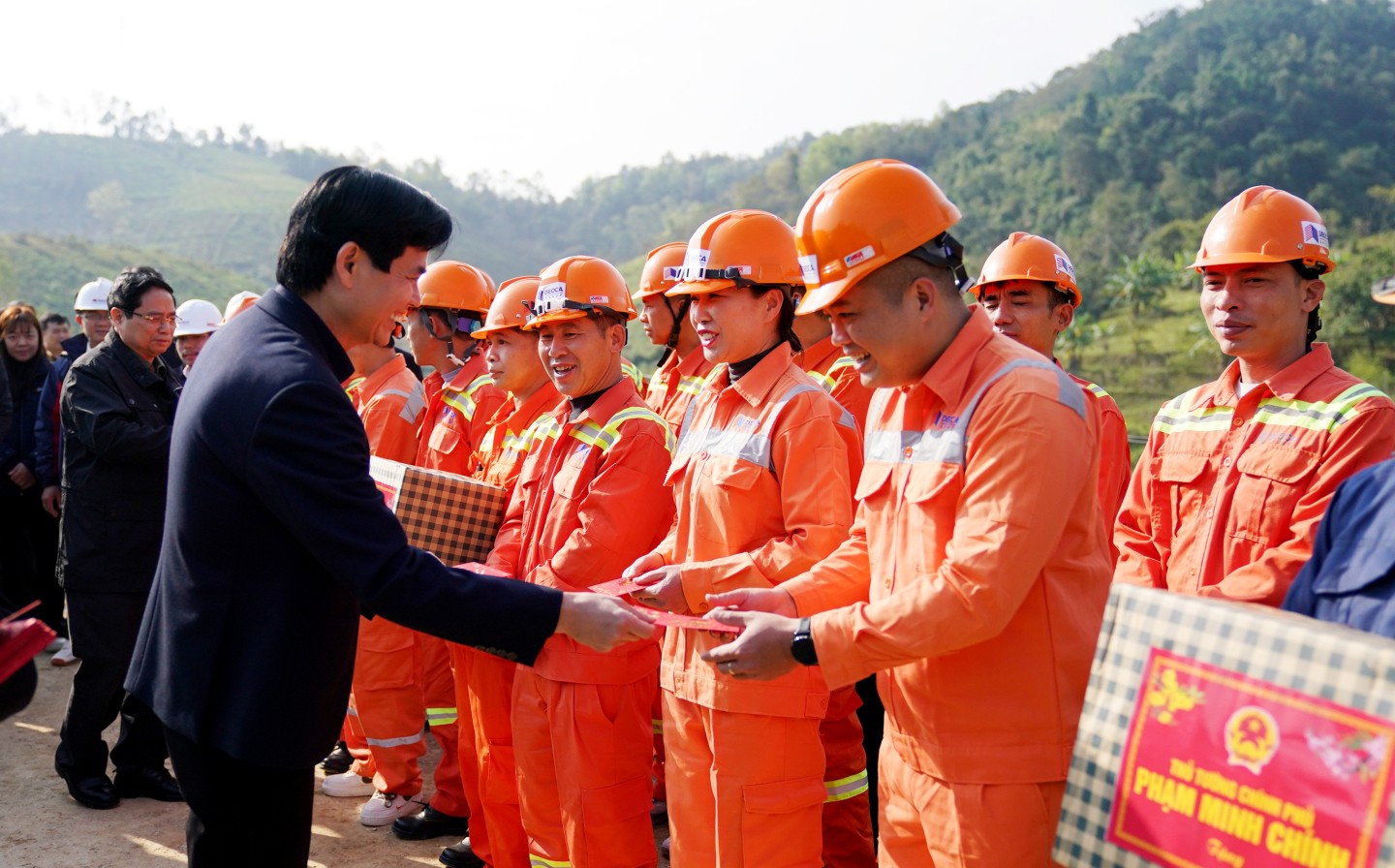 Thủ tướng Chính phủ Phạm Minh Chính chúc tết và tặng quà kỹ sư, công nhân thi công dự án cao tốc Đồng Đăng - Trà Lĩnh