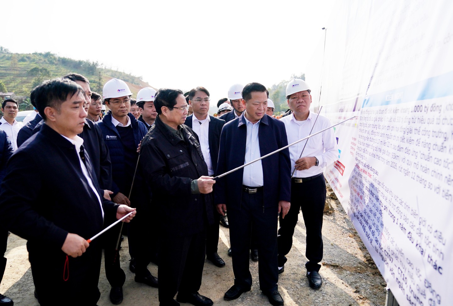 Thủ tướng Phạm Minh Chính cùng lãnh đạo các bộ, ngành trung ương, lãnh đạo tỉnh Lạng Sơn và Cao Bằng kiểm tra thực địa dự án cao tốc Đồng Đăng - Trà Lĩnh