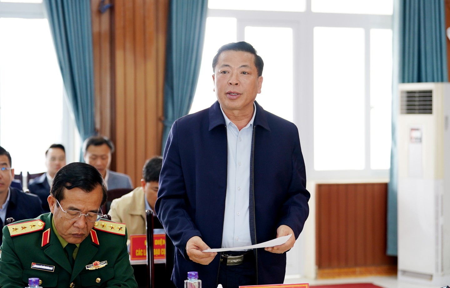 Cùng đi có các đồng chí Ủy viên Trung ương Đảng: Trần Hồng Minh, Bộ trưởng Bộ Xây dựng; Nguyễn Quốc Khánh, Bí thư Tỉnh ủy Lạng Sơn; Phan Thăng An, Bí thư Tỉnh ủy Cao Bằng; lãnh đạo các bộ, ngành Trung ương; lãnh đạo Tỉnh ủy, HĐND, UBND và các sở ngành của hai tỉnh.