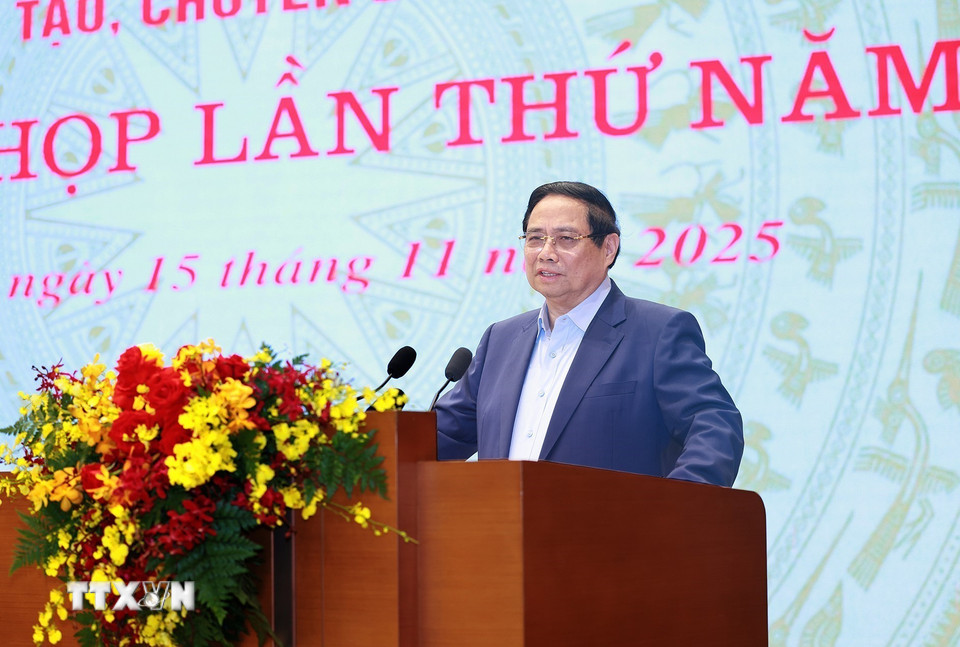 Thủ tướng Phạm Minh Chính khai mạc phiên họp lần thứ năm của BCĐ của Chính phủ về phát triển khoa học, công nghệ, đổi mới sáng tạo, chuyển đổi số và Đề án 06. (Ảnh: Dương Giang/TTXVN)