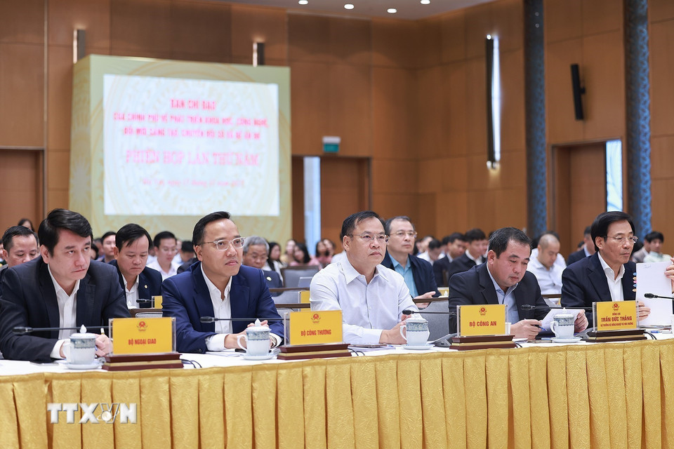 Phiên họp lần thứ năm của BCĐ của Chính phủ về phát triển khoa học, công nghệ, đổi mới sáng tạo, chuyển đổi số và Đề án 06. (Ảnh: Dương Giang/TTXVN)