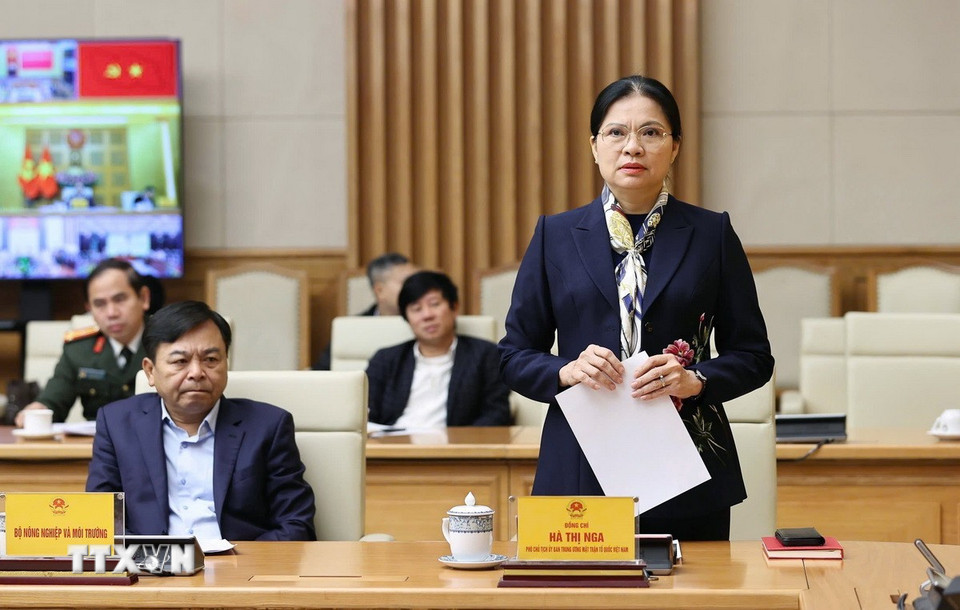 Phó Chủ tịch Ủy ban Trung ương Mặt trận Tổ quốc Việt Nam Hà Thị Nga phát biểu. (Ảnh: Dương Giang/TTXVN)