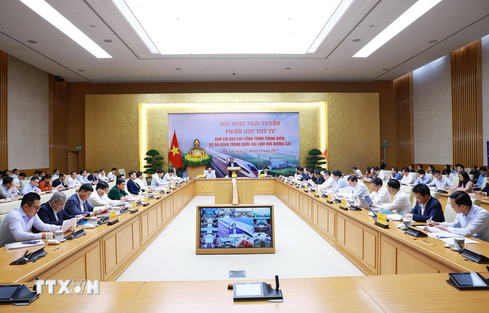 Phiên họp lần thứ tư Ban chỉ đạo các công trình trọng điểm, dự án quan trọng quốc gia lĩnh vực đường sắt. (Ảnh: Dương Giang/TTXVN)